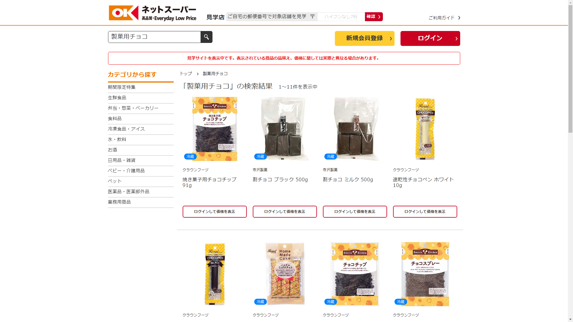 製菓用チョコはオーケーネットスーパーで販売されています