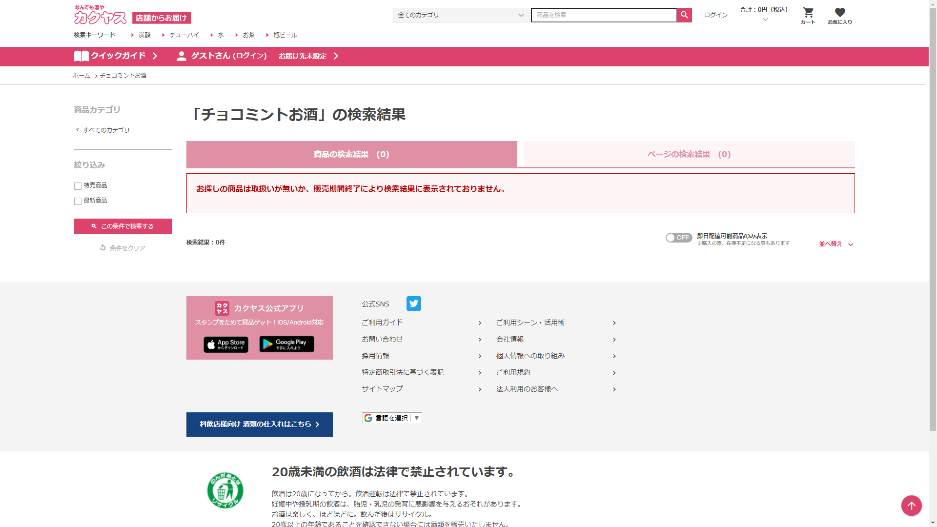 チョコミントお酒はなんでも酒やカクヤスには売っていない!