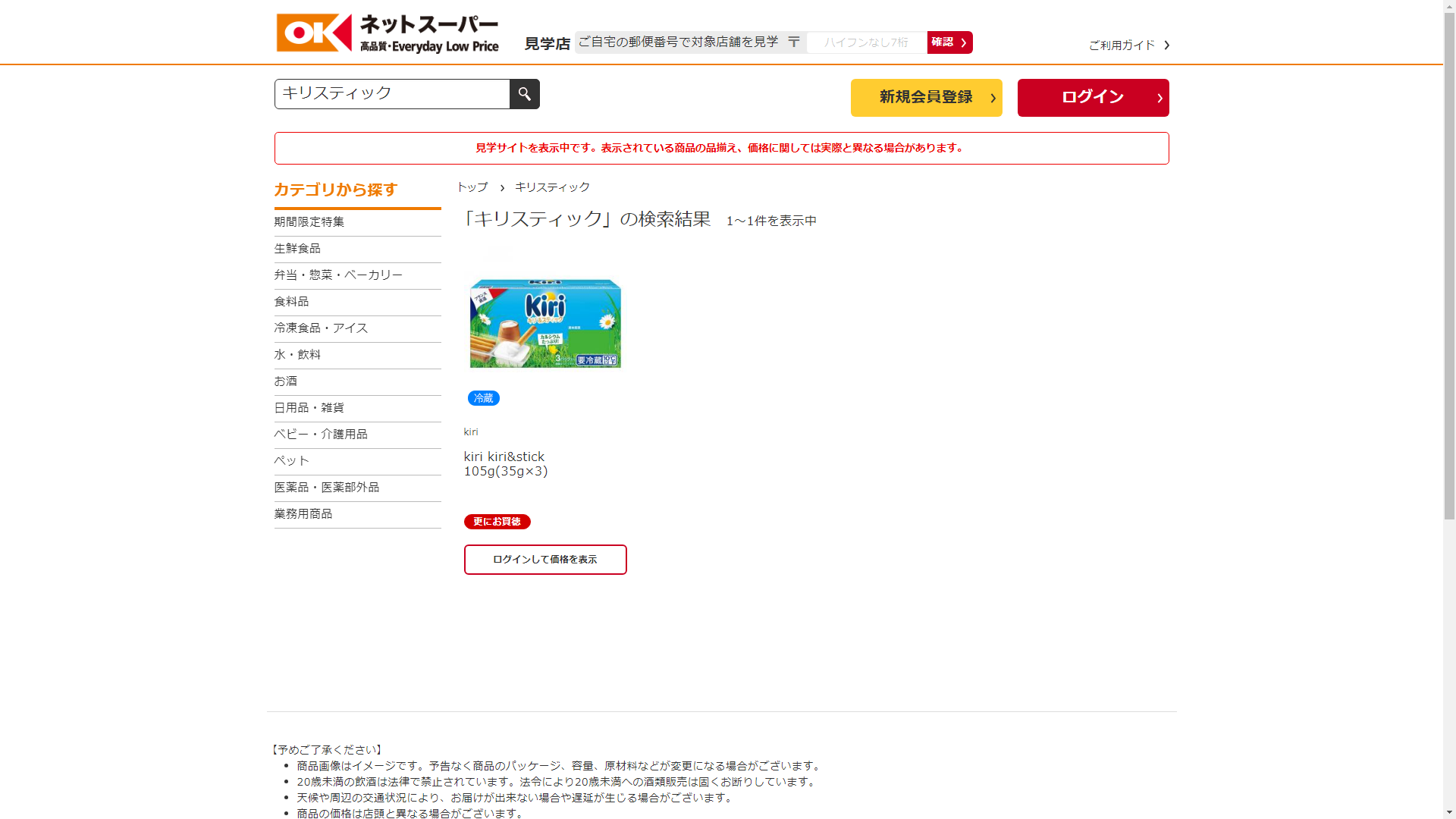 お調べしたところ現在OKネットスーパーではキリスティックに関連する商品が販売されています。