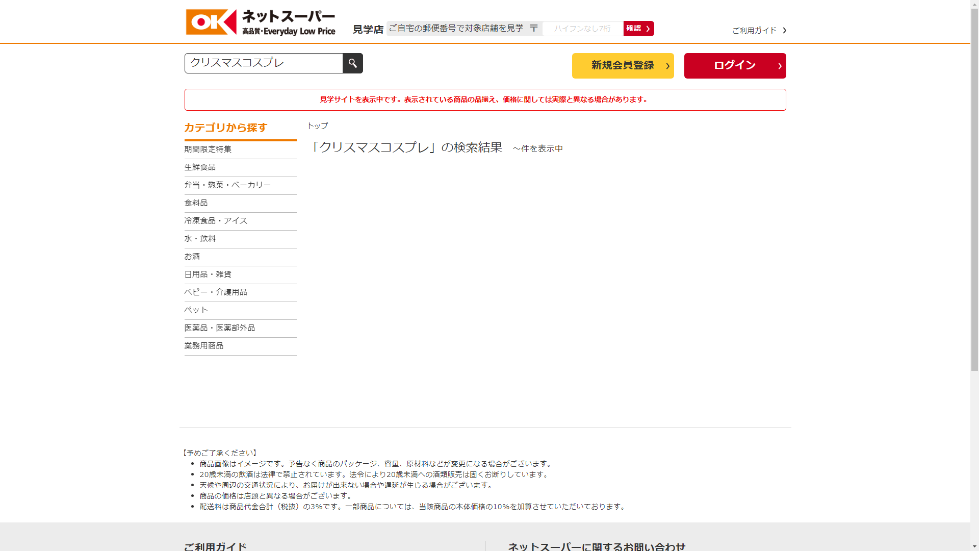 クリスマスコスプレはオーケーネットスーパーで販売されていません