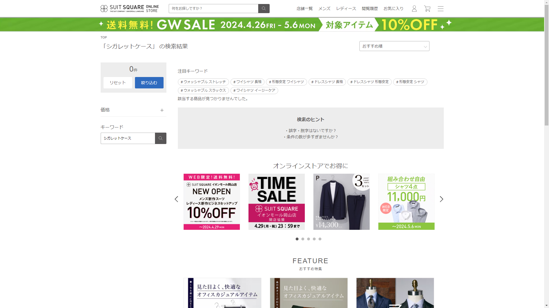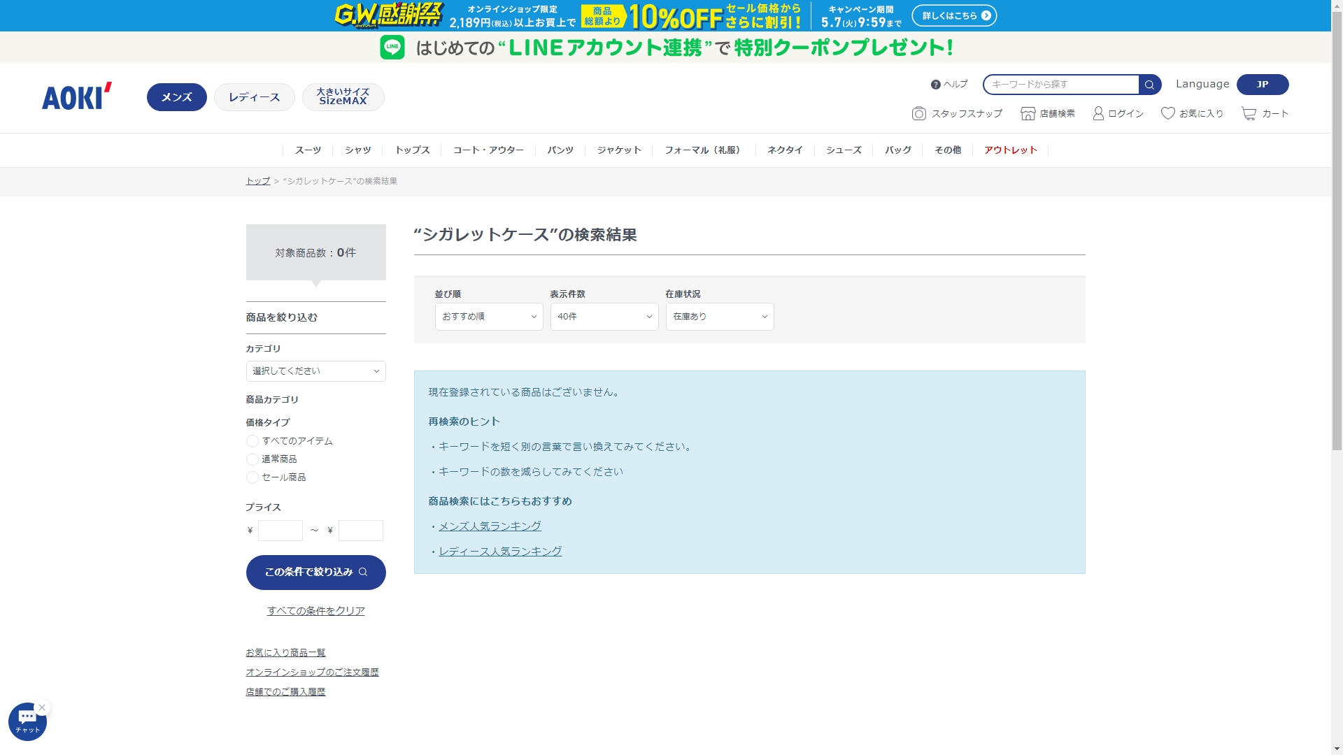 お調べしたところ残念ながら現在ではスーツのAOKIにシガレットケースは販売されていませんでした。