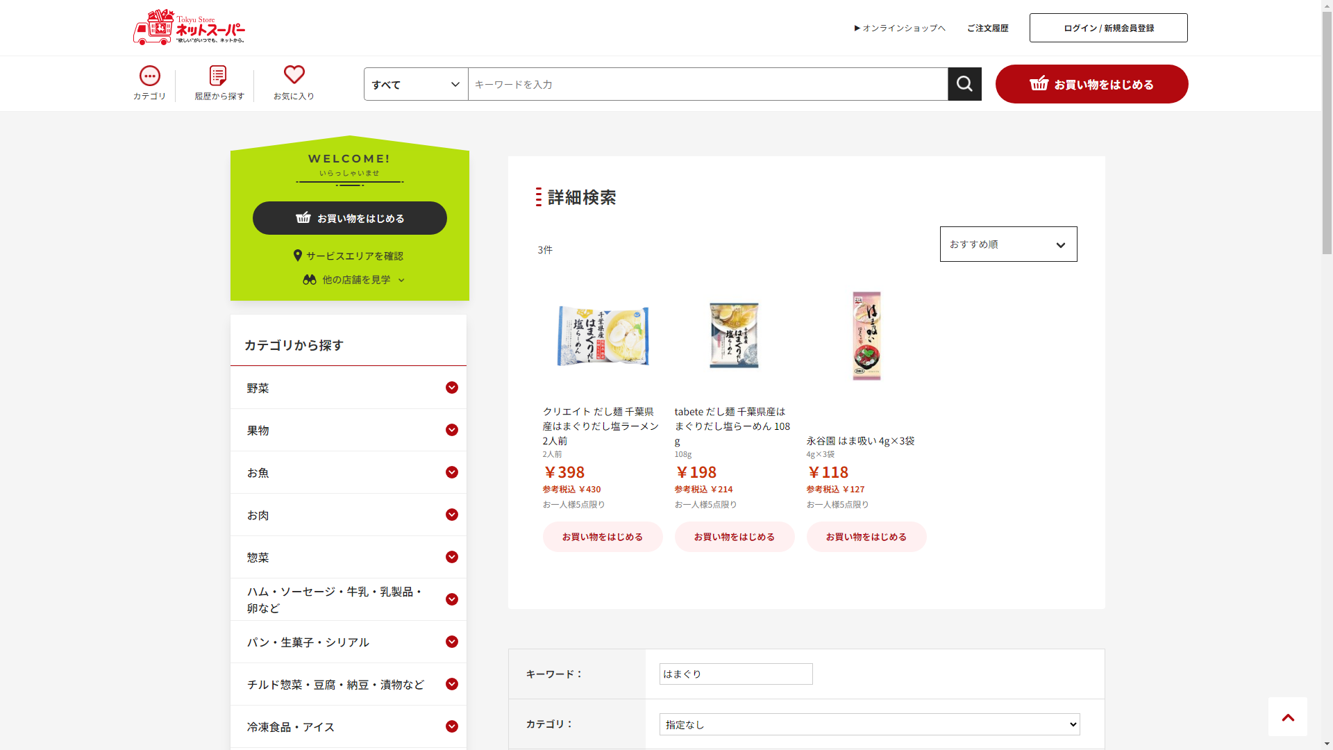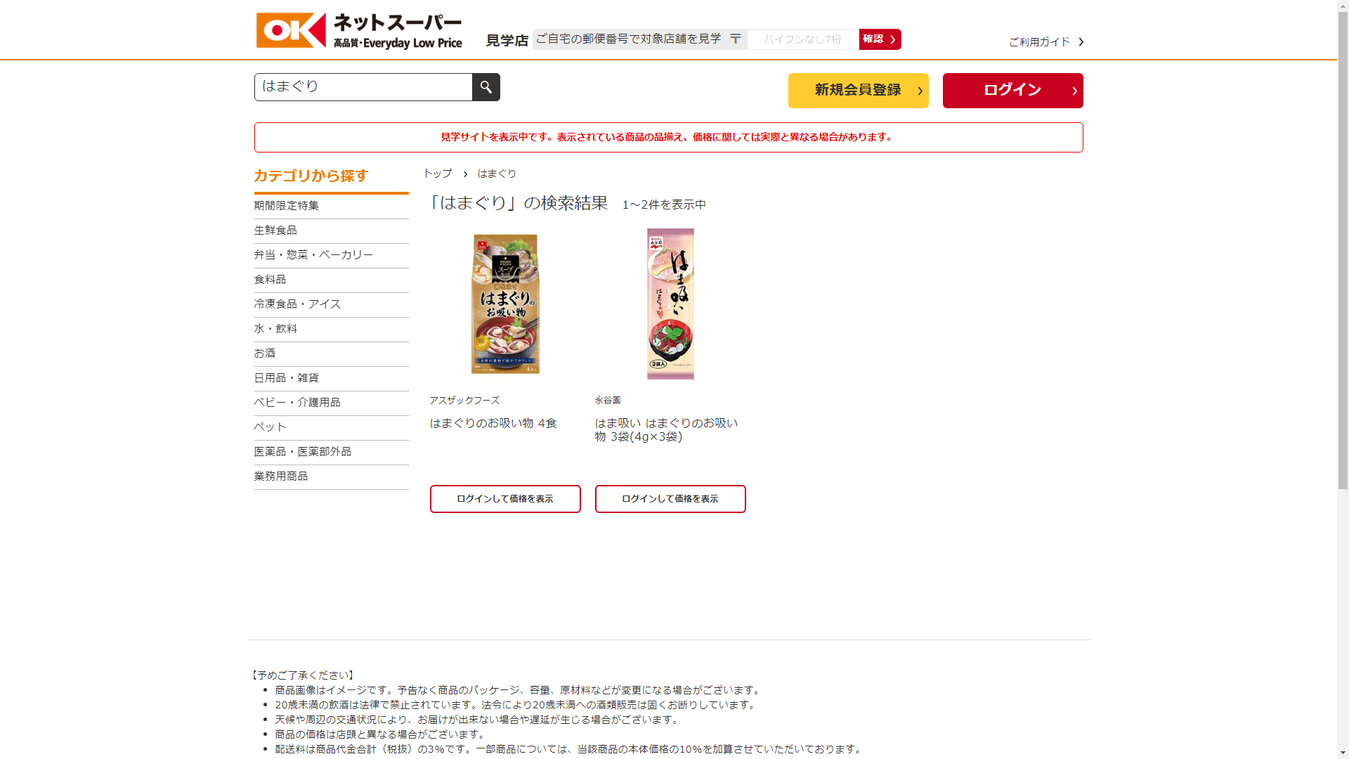 お調べしたところ現在OKネットスーパーでははまぐりに関連する商品が販売されています。