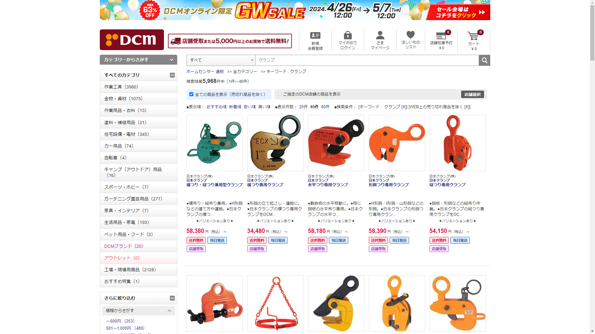 お調べしたところ現在、DCMではクランプに関連する商品が販売されています。