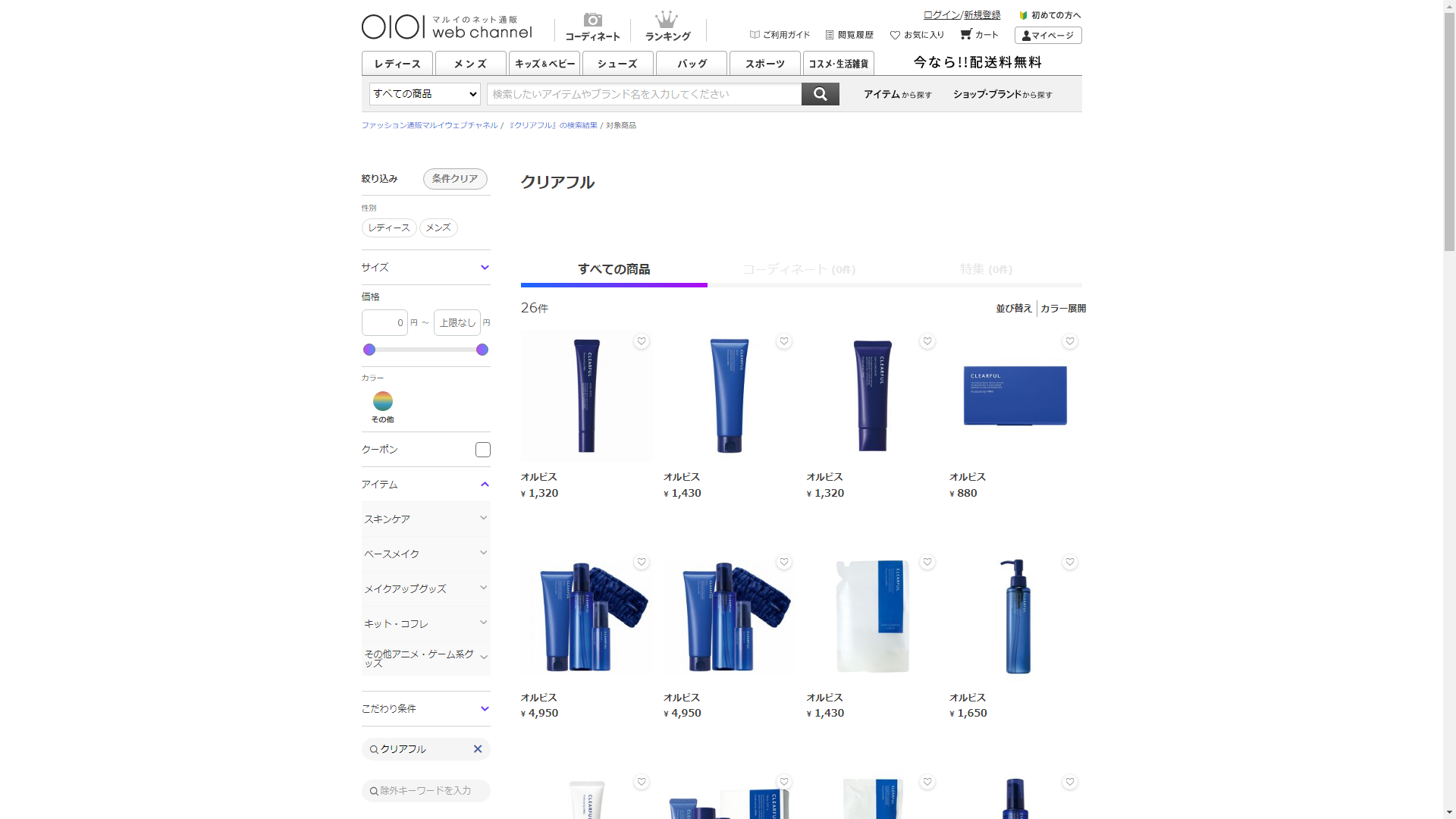 お調べしたところ現在、OIOI(マルイ)ではクリアフルに関連する商品を買うことが可能です。