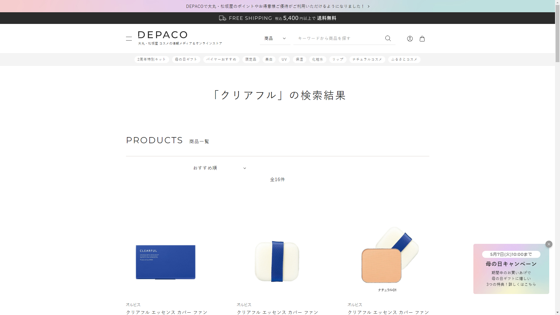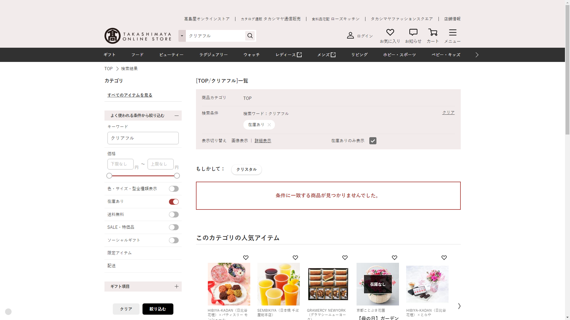 クリアフルは高島屋には売っていません