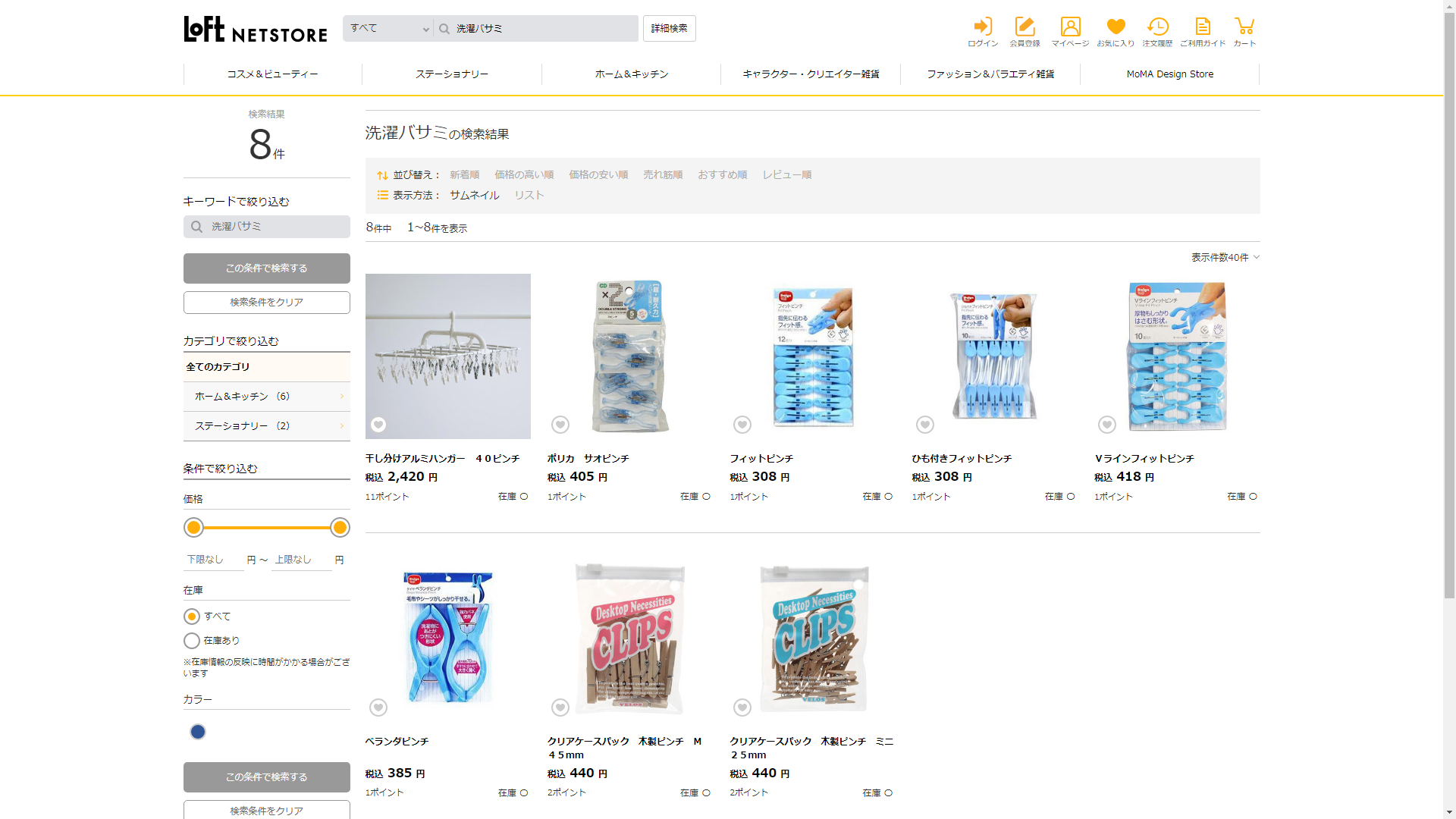 お調べしたところ現在、ロフトでは洗濯バサミに関連する商品が販売されています。