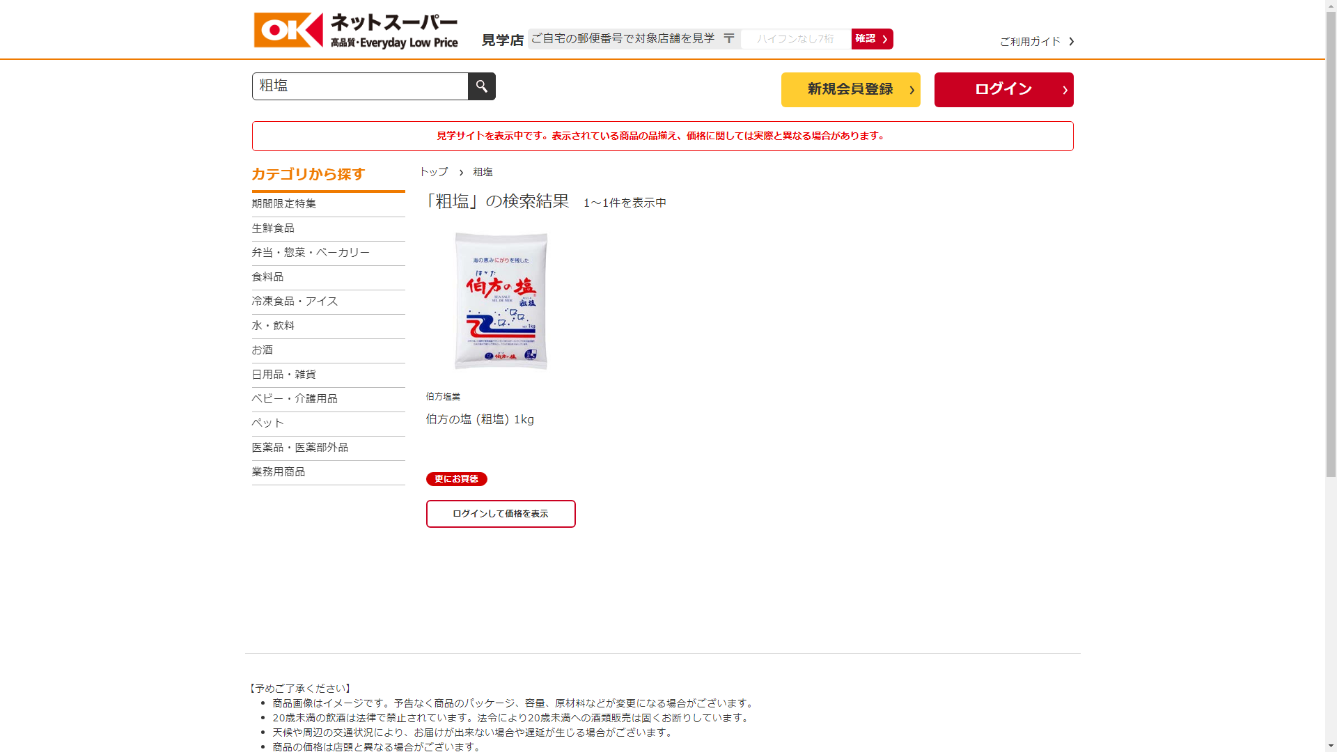 お調べしたところ現在OKネットスーパーでは粗塩に関連する商品が販売されています。