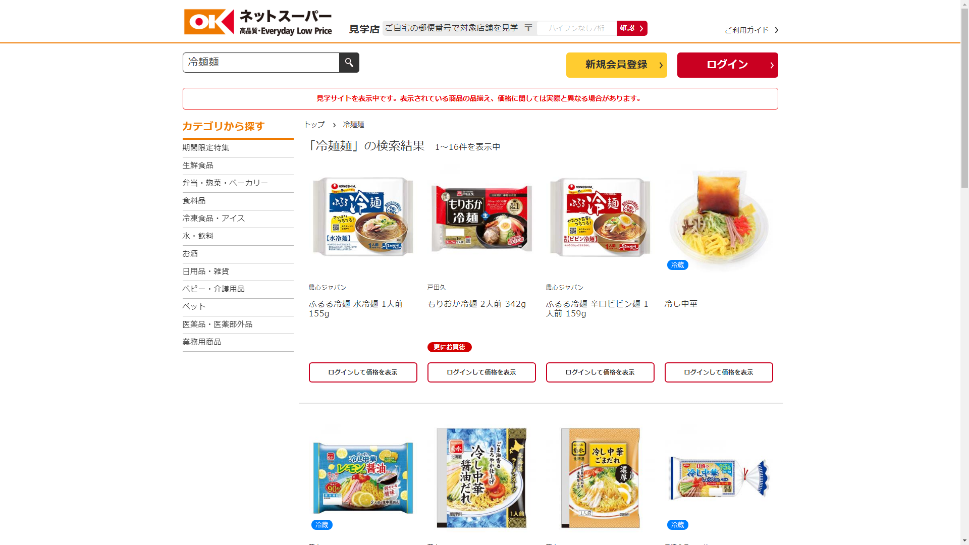 お調べしたところ現在OKネットスーパーでは冷麺麺に関連する商品が販売されています。