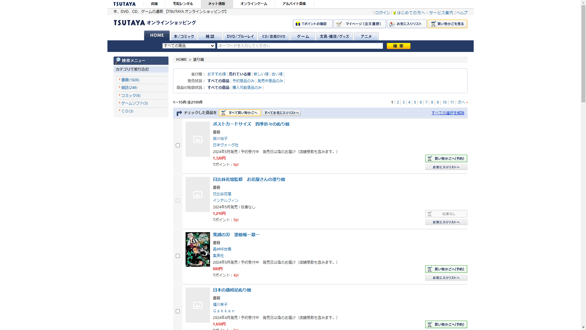 お調べしたところ現在、紀伊國屋書店では塗り絵に関連する商品を買うことが可能です。