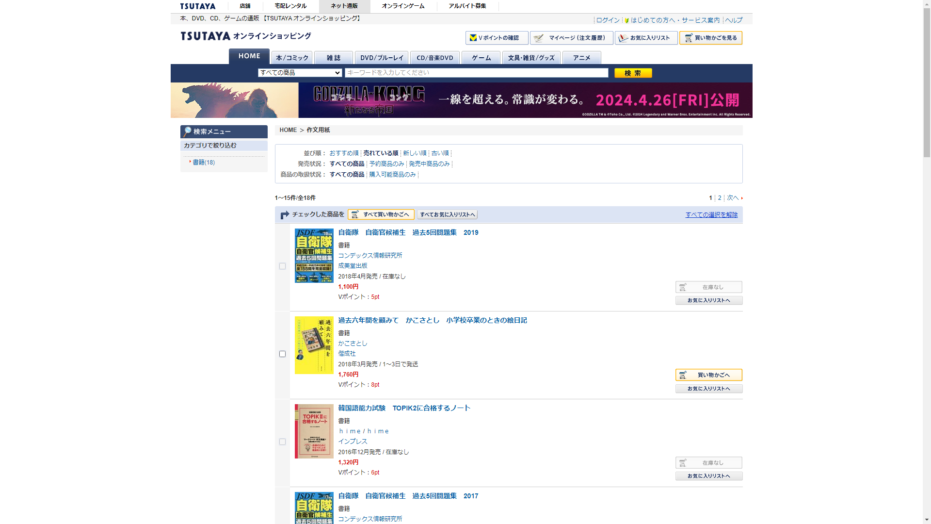 お調べしたところ現在、蔦屋書店では作文用紙の関連する商品が販売されています。