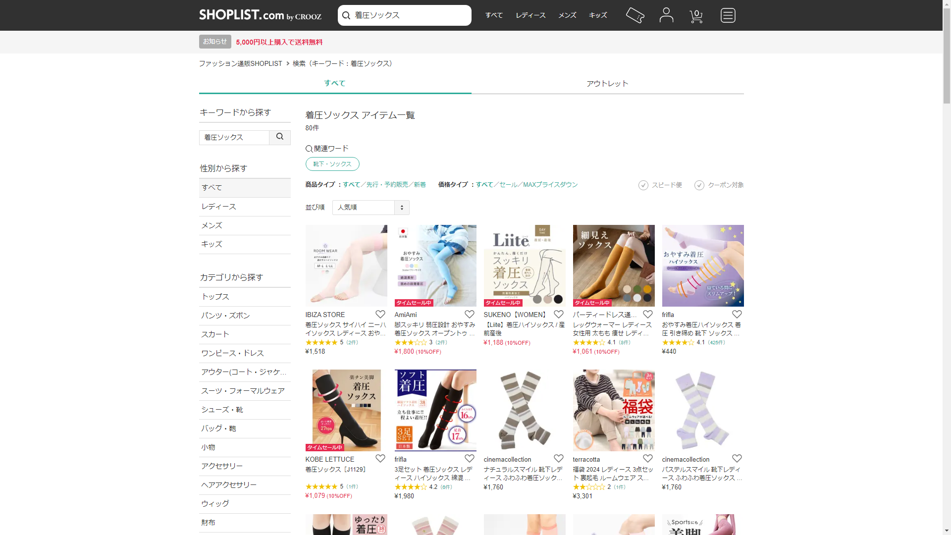 お調べしたところ現在、SHOPLISTでは着圧ソックスの関連する商品が販売されています。