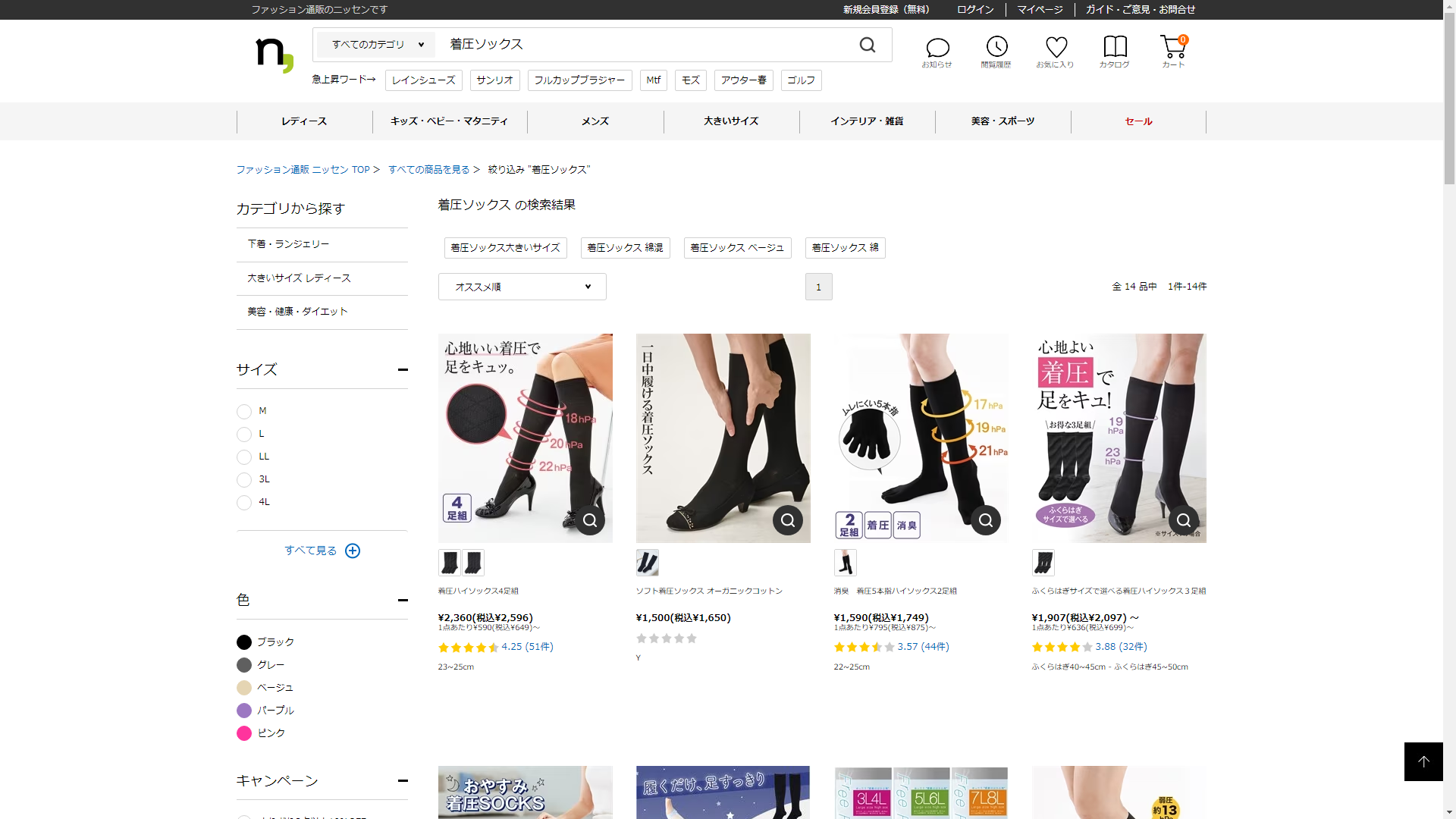 お調べしたところ現在、ニッセンでは着圧ソックスに関連する商品が販売されています。