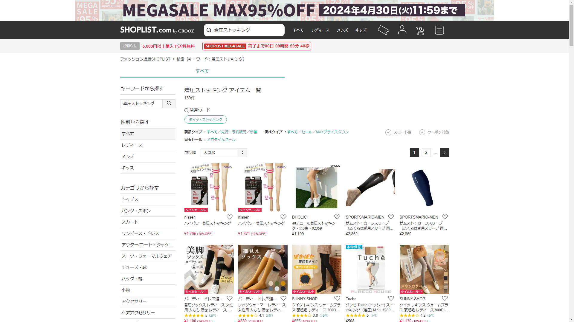 お調べしたところ現在、SHOPLISTでは着圧ストッキングの関連する商品が販売されています。