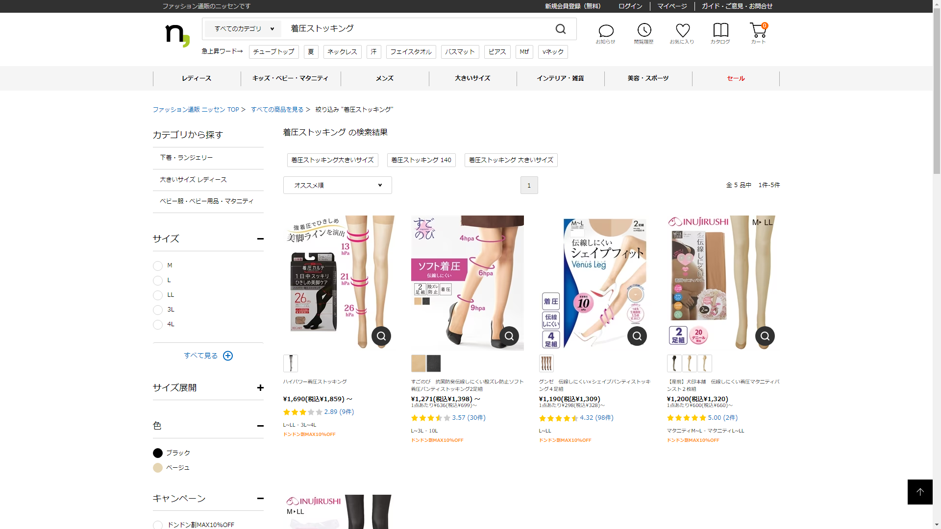 お調べしたところ現在、ニッセンでは着圧ストッキングに関連する商品が販売されています。