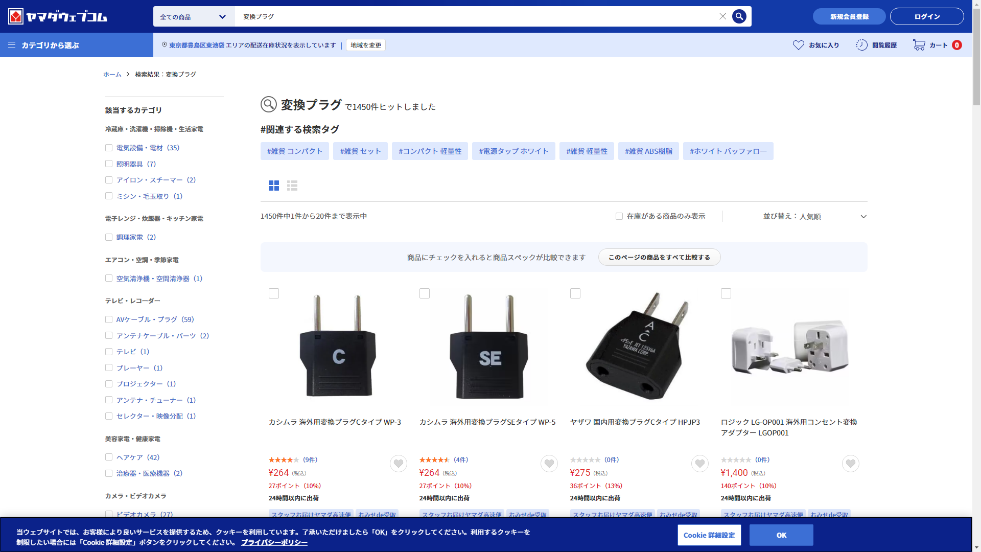 お調べしたところ現在、ヤマダデンキでは変換プラグに関連する商品を買うことが可能です。