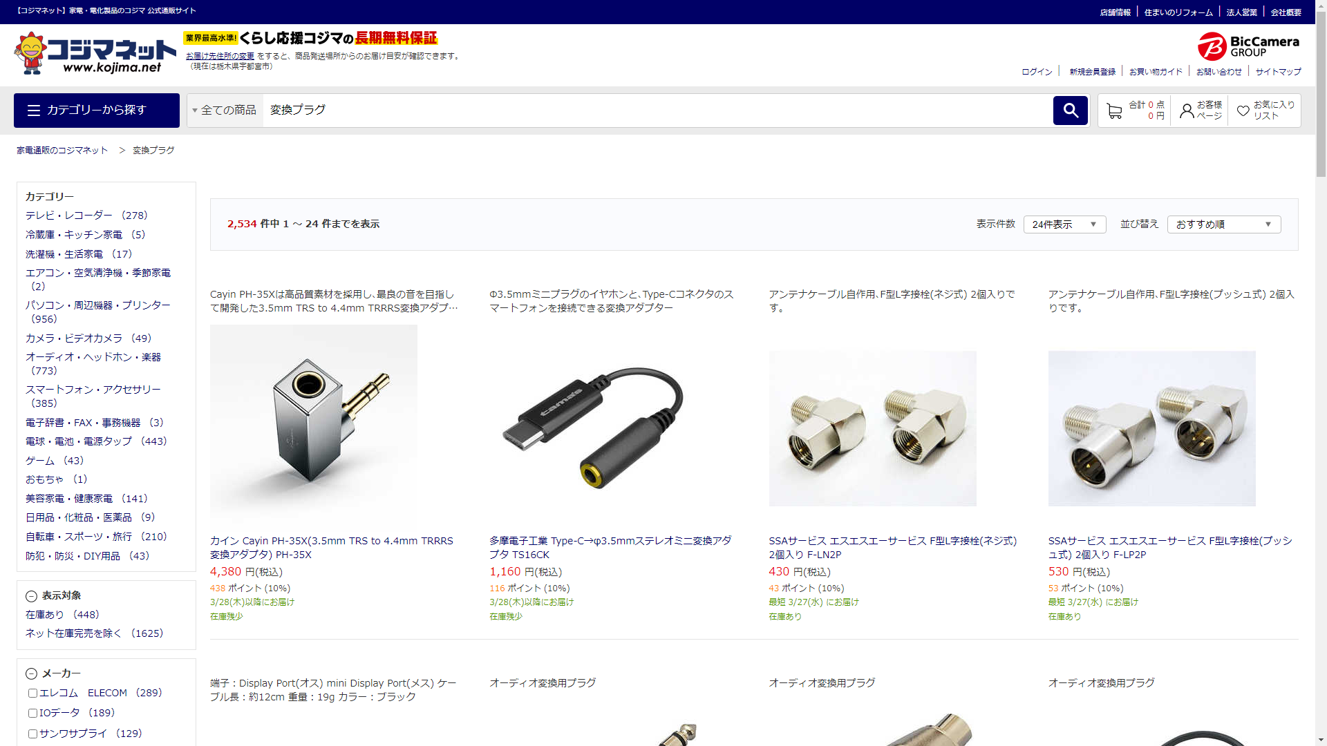 変換プラグは家電・電化製品のコジマに売っています