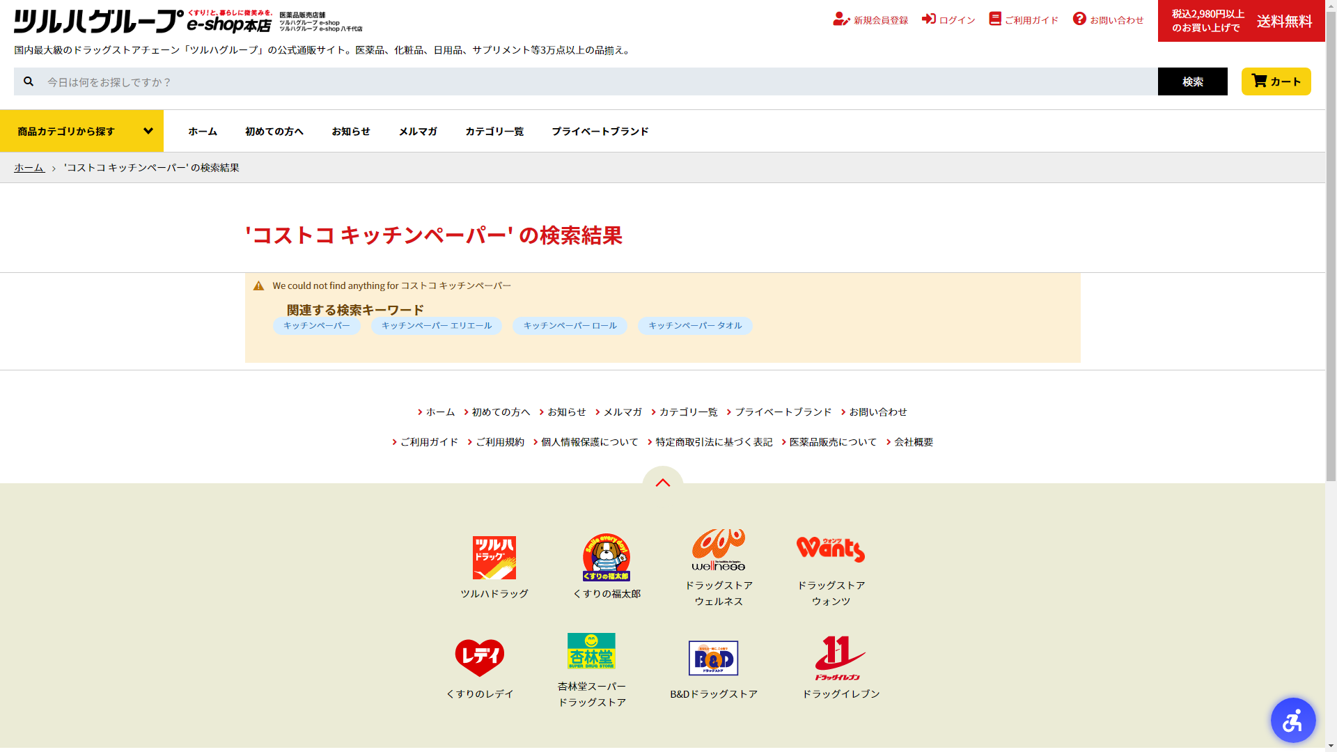 コストコ キッチンペーパーはツルハドラッグには売っていない