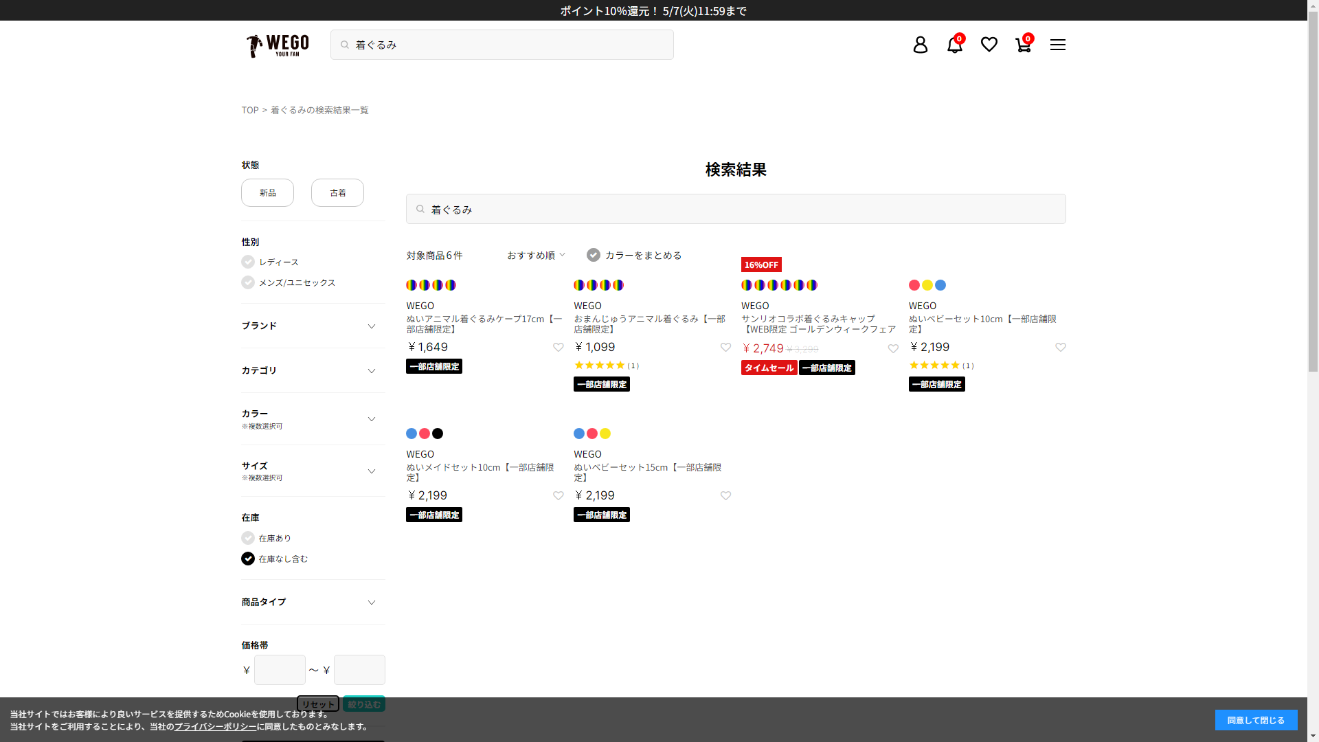 お調べしたところ残念ながら現在ではWEGOに着ぐるみは販売されていませんでした。