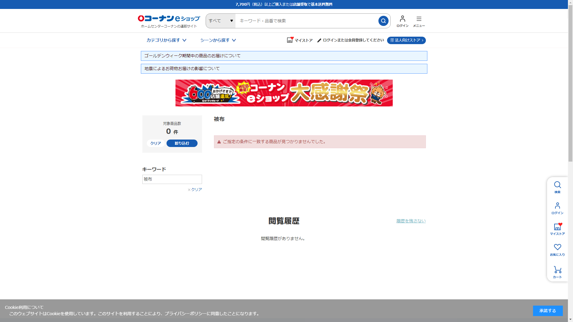 お調べしたところ残念ながら現在ではホームセンターコーナンに被布は販売されていませんでした。
