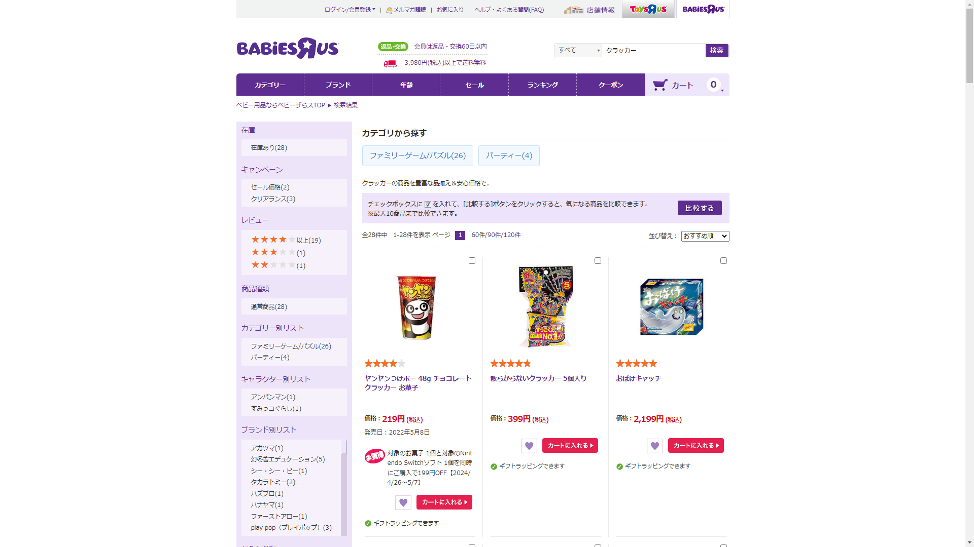 お調べしたところ現在、トイザらスではクラッカーに関連する商品を買うことが可能です。