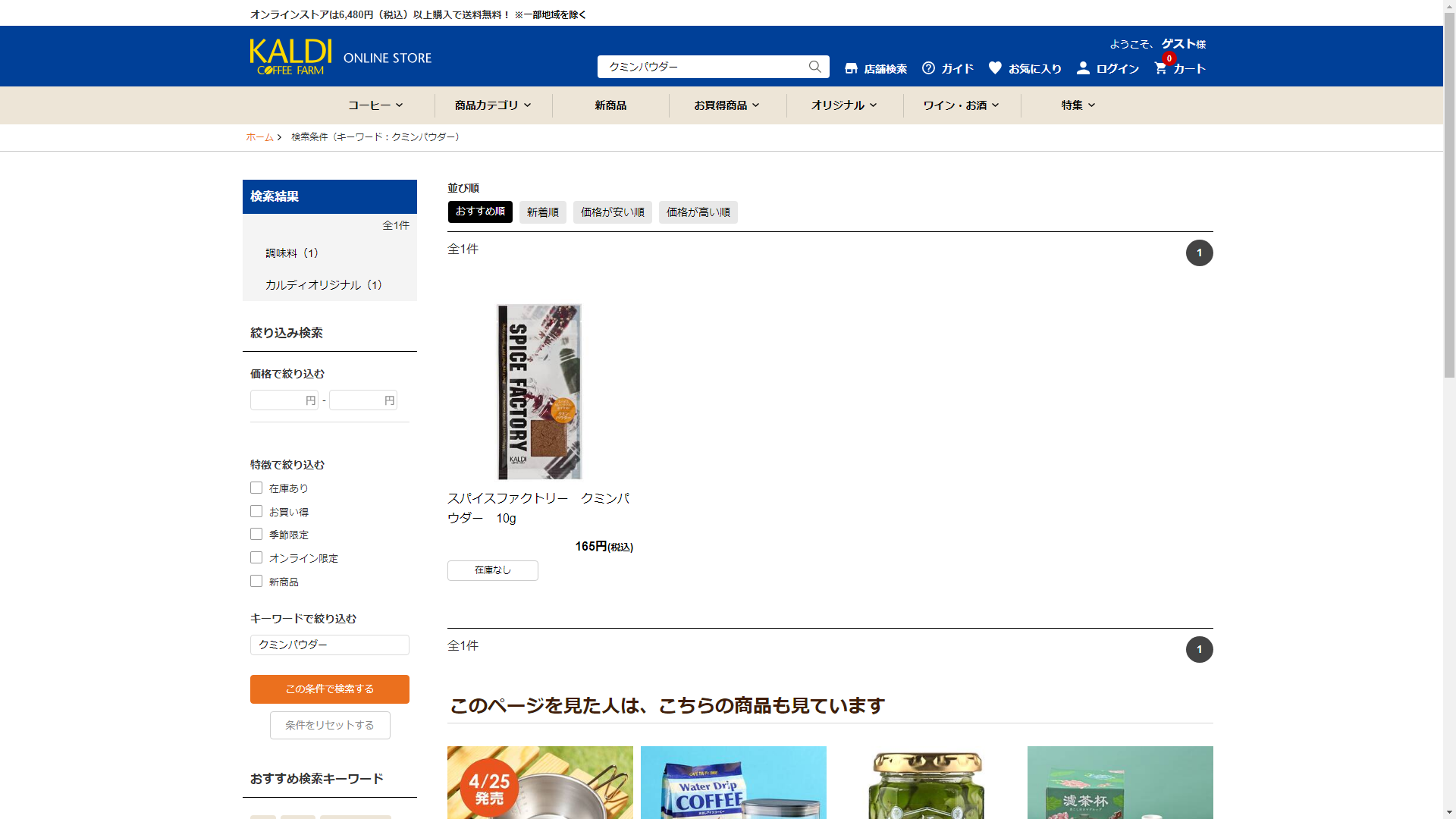 お調べしたところ現在、カルディではクミンパウダーに関連する商品を買うことが可能です。
