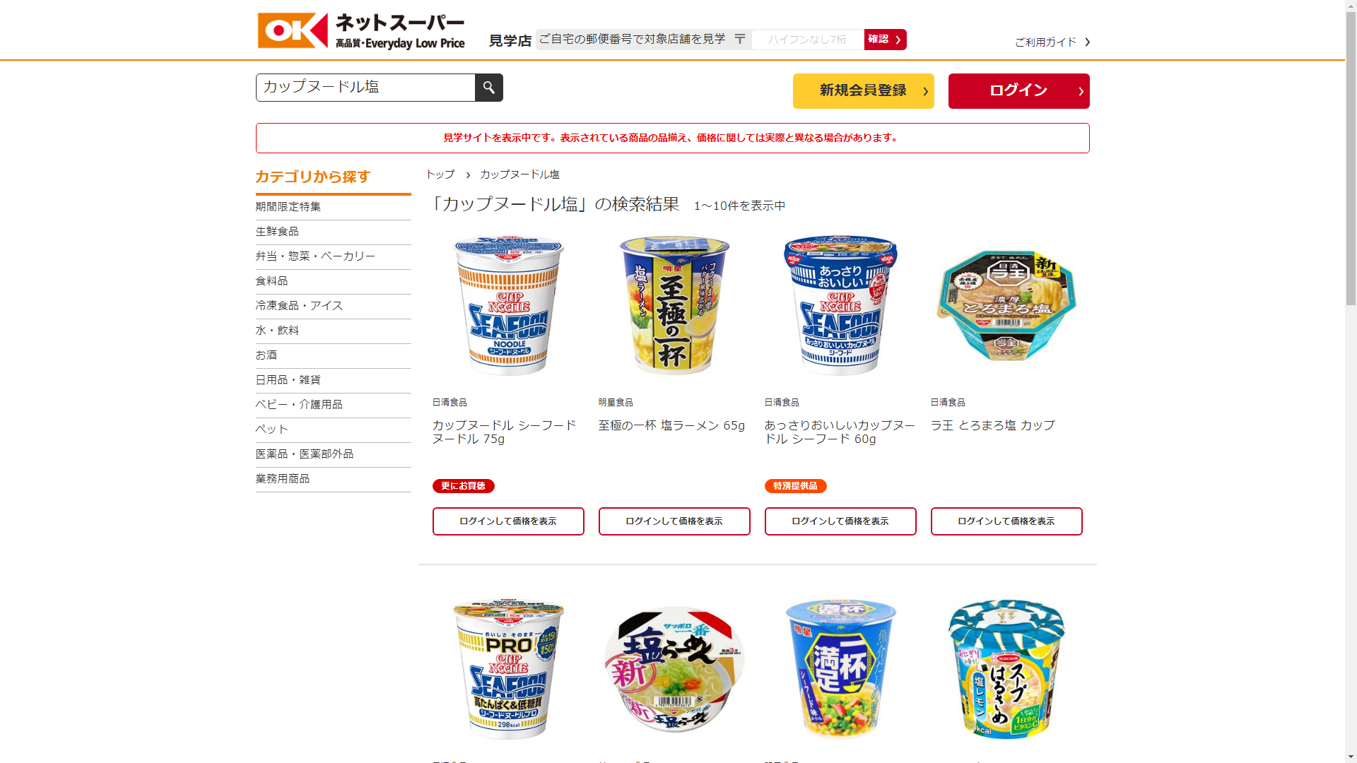 カップヌードル塩はオーケーネットスーパーで販売されています