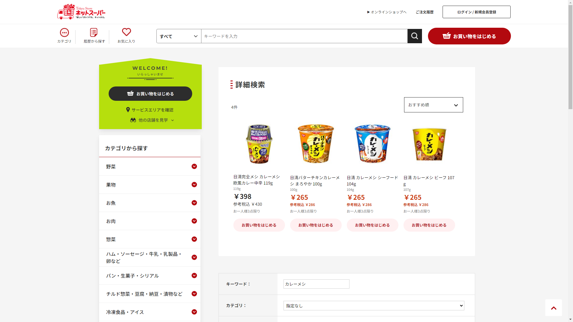 お調べしたところ現在、東急ストアではカレーメシの関連する商品が販売されています。