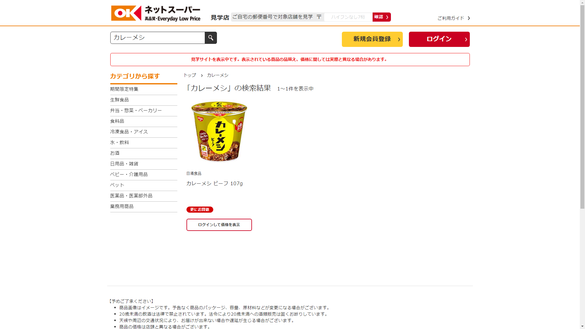 お調べしたところ現在OKネットスーパーではカレーメシに関連する商品が販売されています。