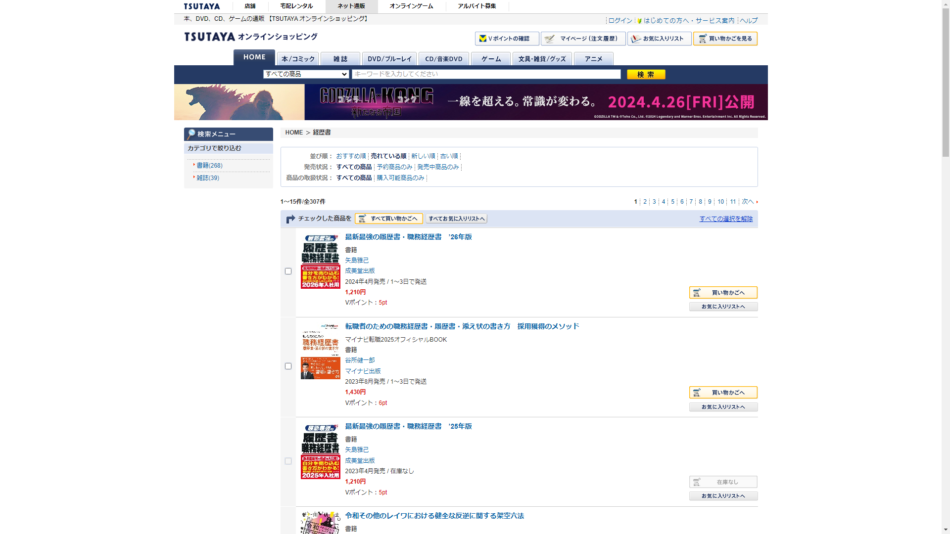 お調べしたところ現在、蔦屋書店では経歴書の関連する商品が販売されています。