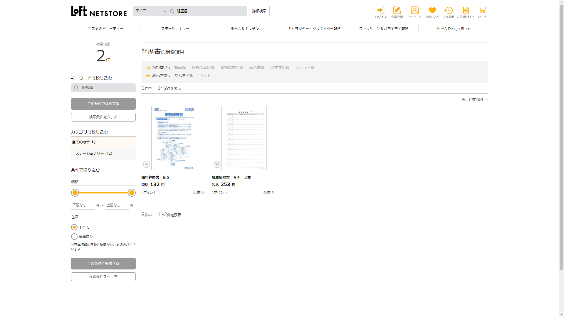 経歴書はロフトで販売されています
