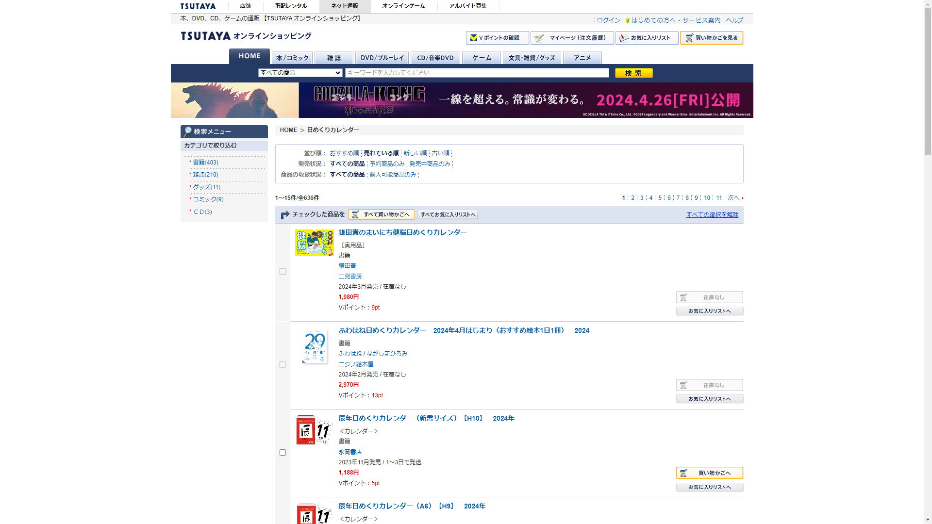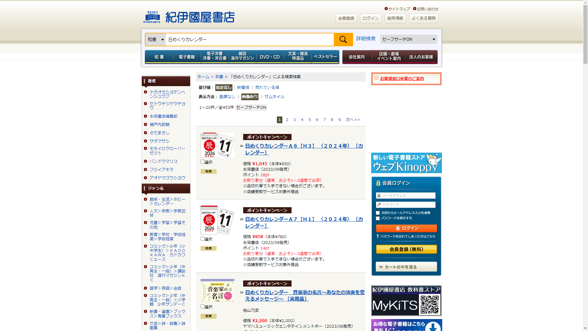 お調べしたところ現在、紀伊國屋書店では日めくりカレンダーに関連する商品を買うことが可能です。