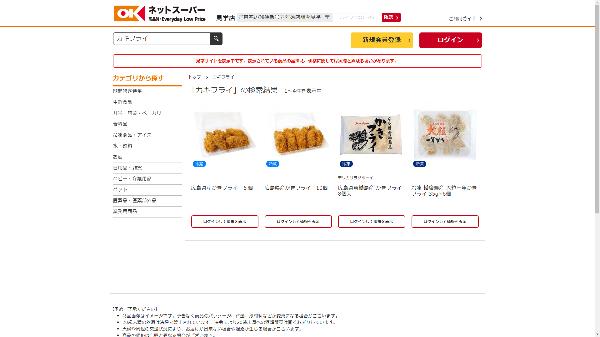 お調べしたところ現在OKネットスーパーではカキフライに関連する商品が販売されています。