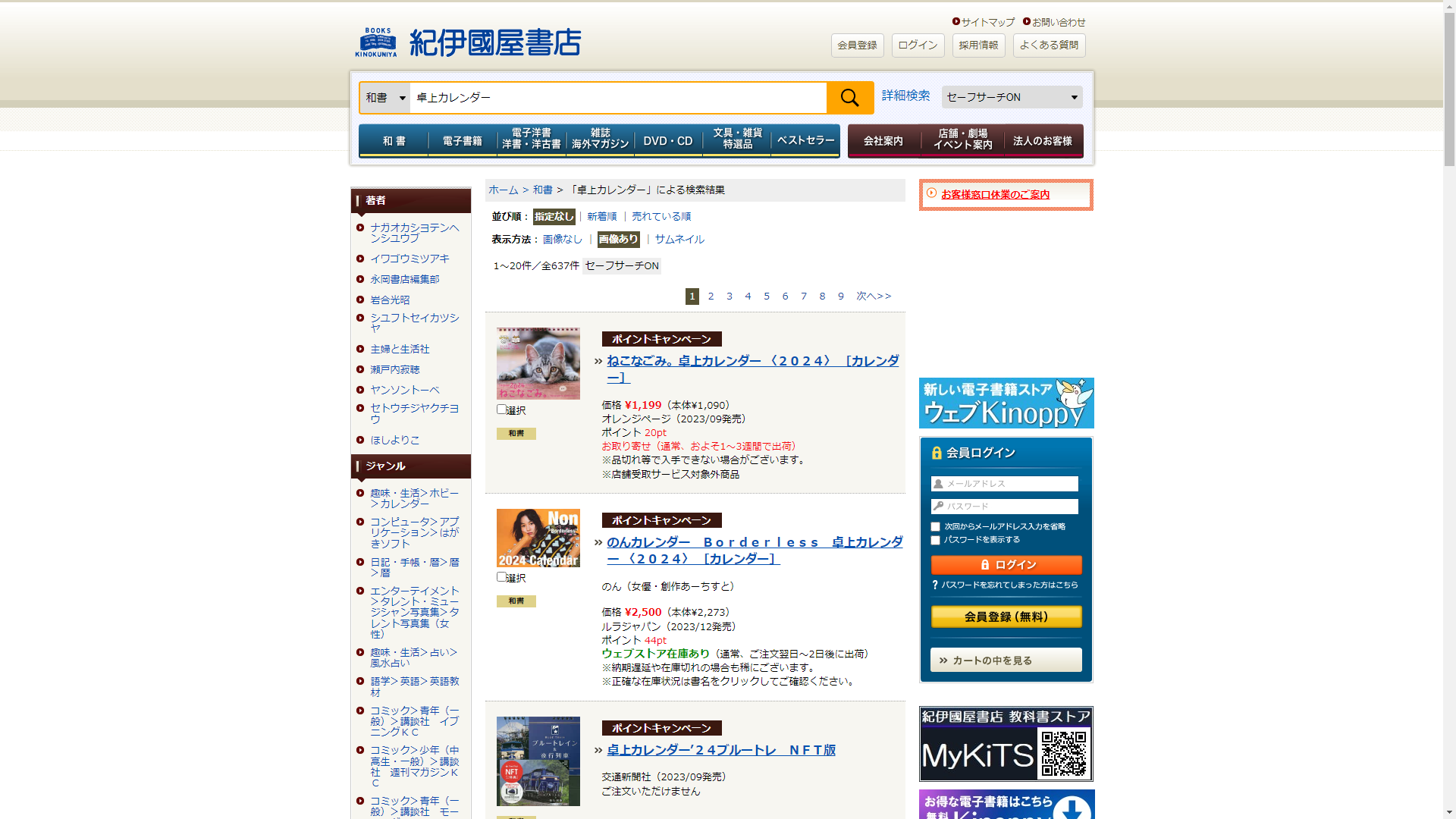お調べしたところ現在、紀伊國屋書店では卓上カレンダーに関連する商品を買うことが可能です。