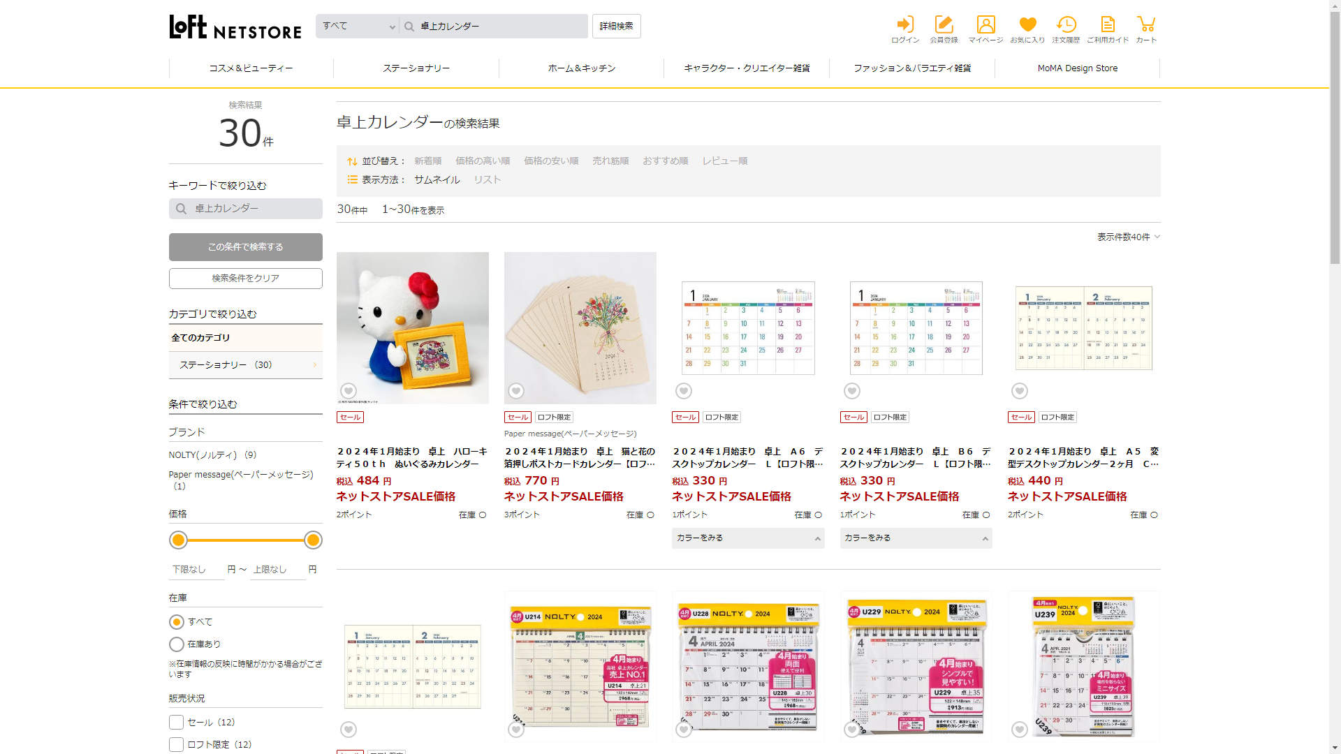 お調べしたところ現在、ロフトでは卓上カレンダーに関連する商品が販売されています。