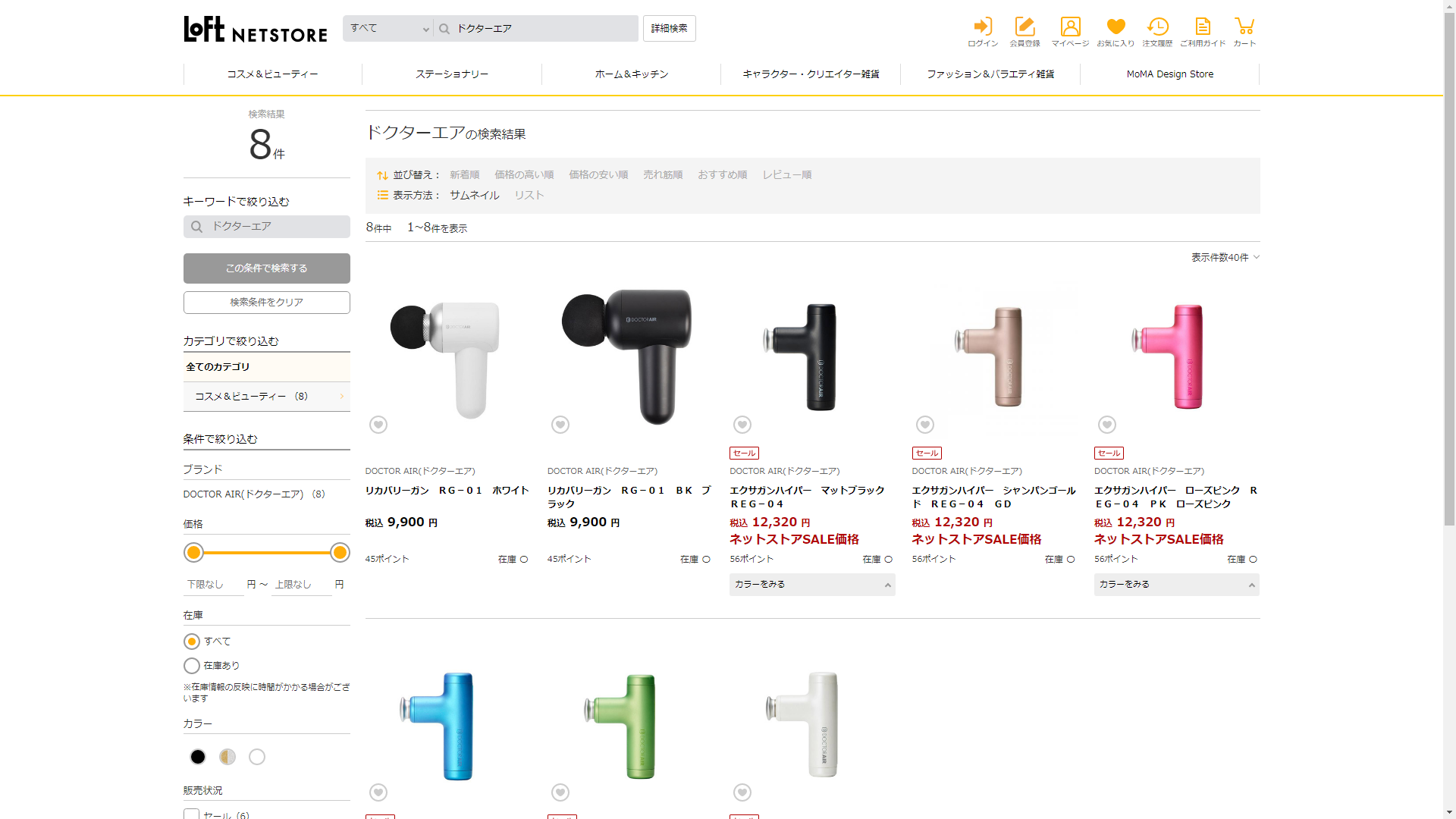 お調べしたところ現在、ロフトではドクターエアに関連する商品が販売されています。