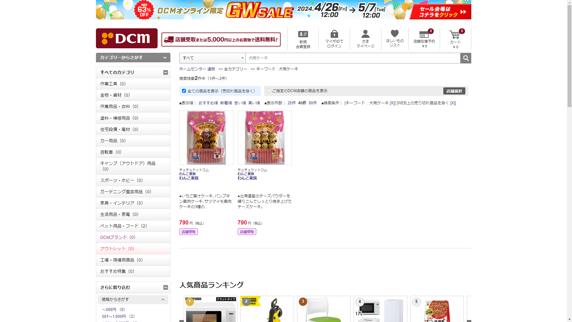 犬用ケーキはDCMで販売されています