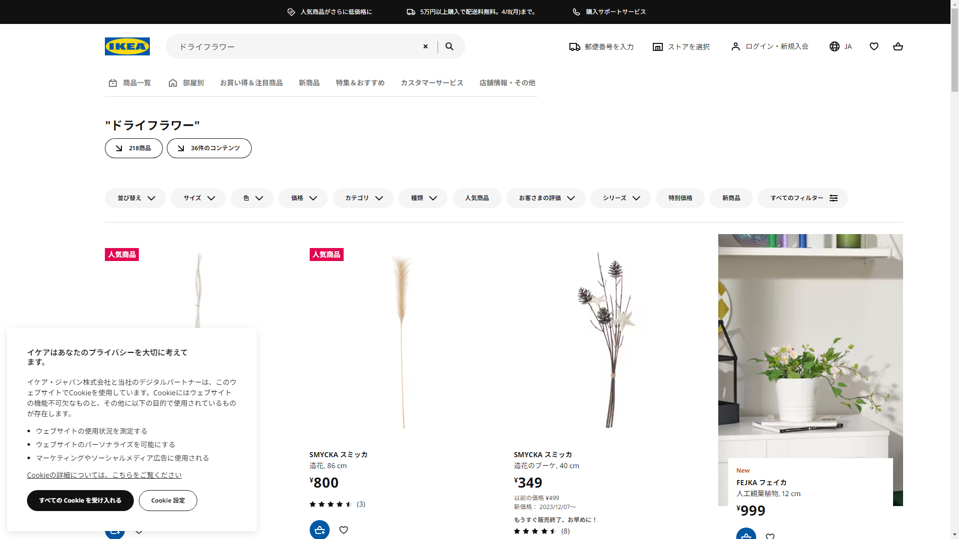 お調べしたところ現在、IKEAではドライフラワーに関連する商品を買うことが可能です。