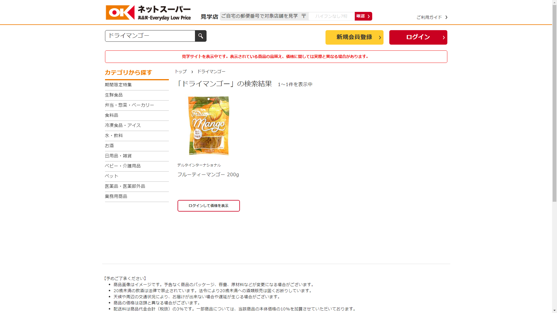 ドライマンゴーはオーケーネットスーパーで販売されています
