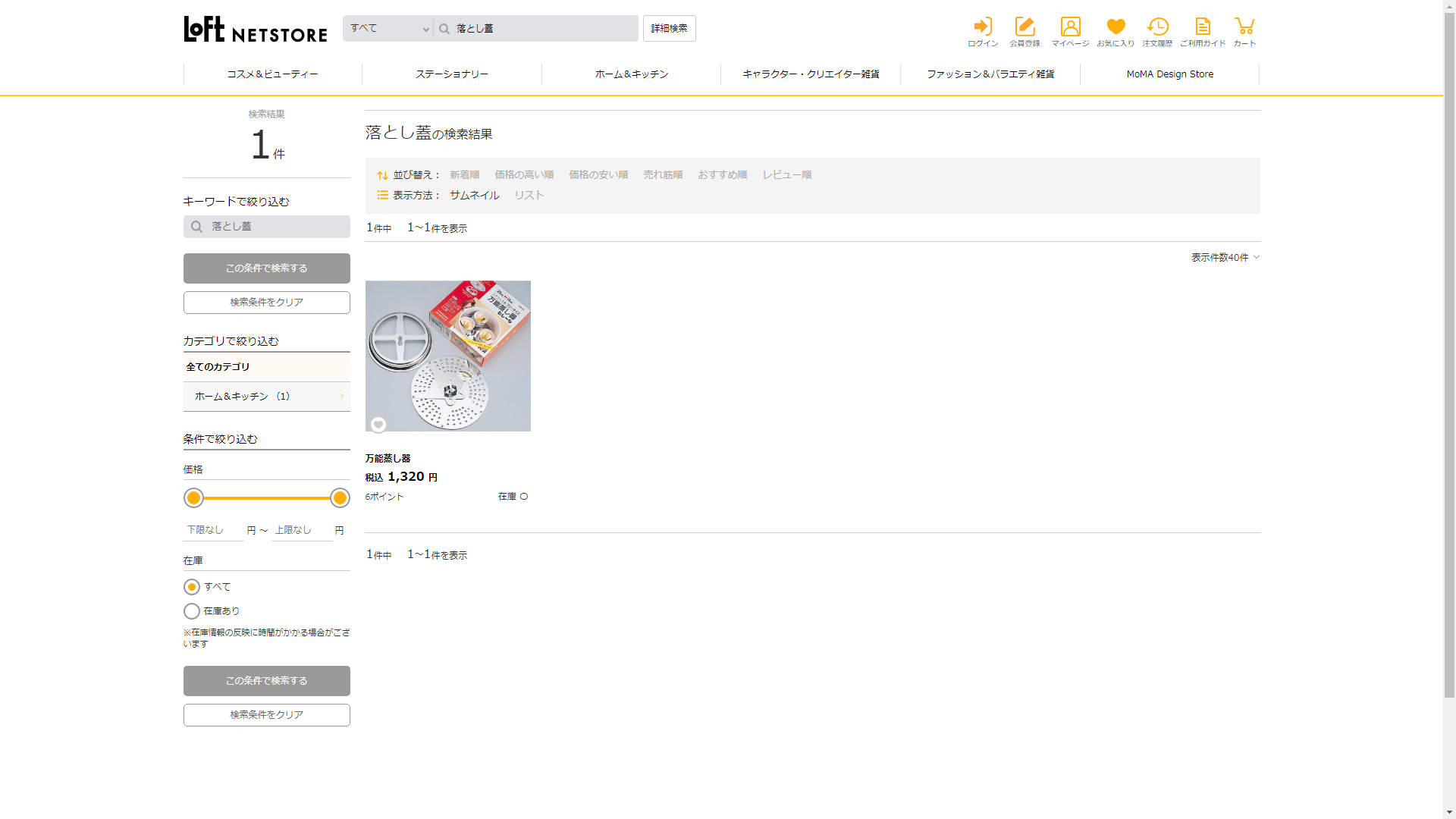 お調べしたところ現在、ロフトでは落とし蓋に関連する商品が販売されています。