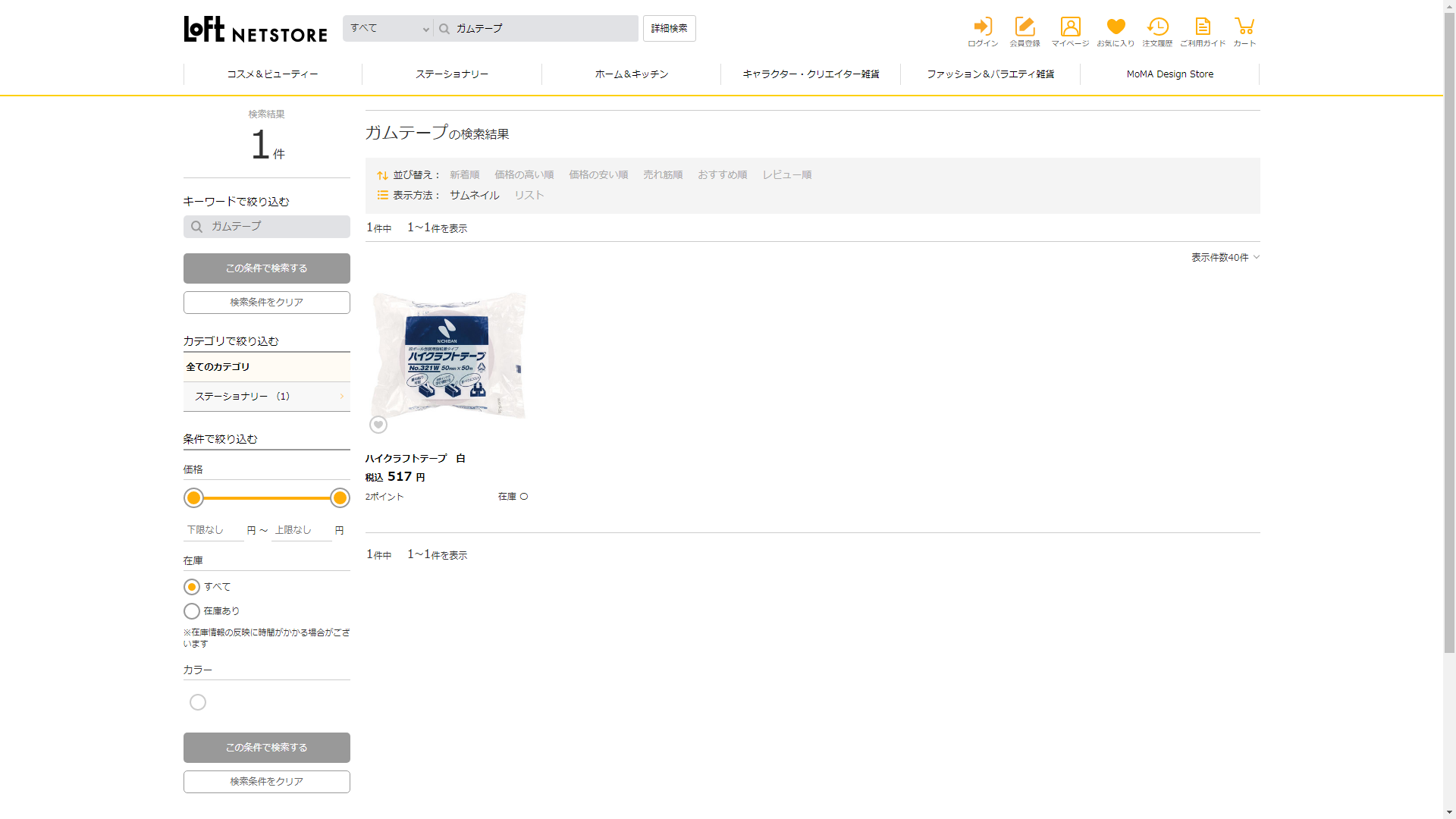 お調べしたところ現在、ロフトではガムテープに関連する商品が販売されています。