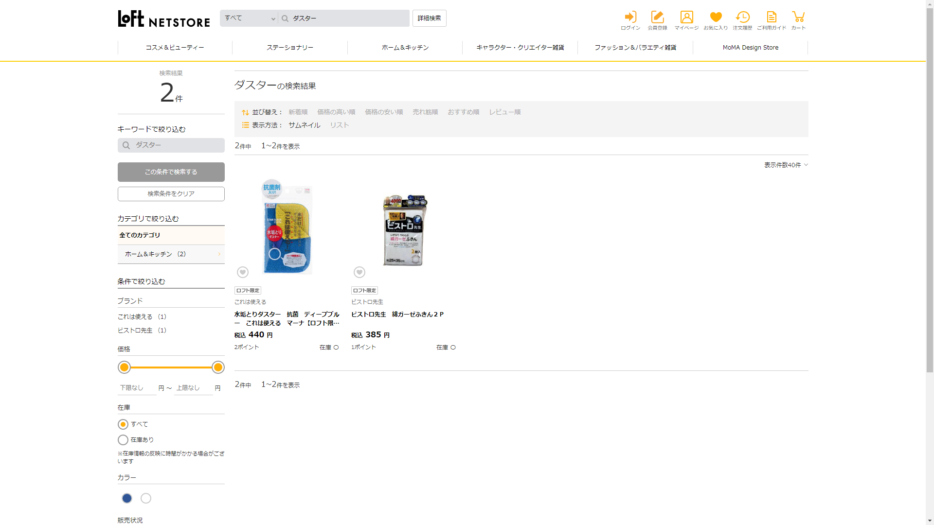 お調べしたところ現在、ロフトではダスターに関連する商品が販売されています。
