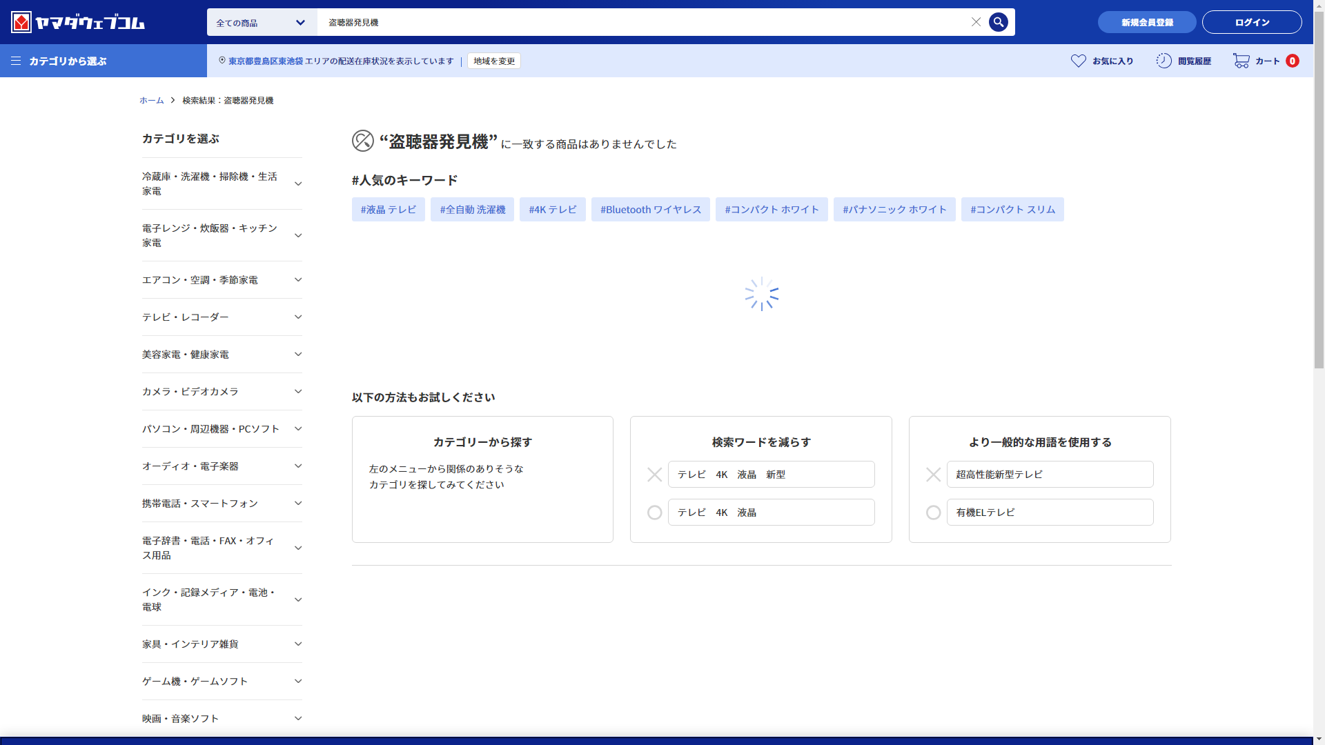 盗聴器発見機は家電・電化製品のコジマには売っていません