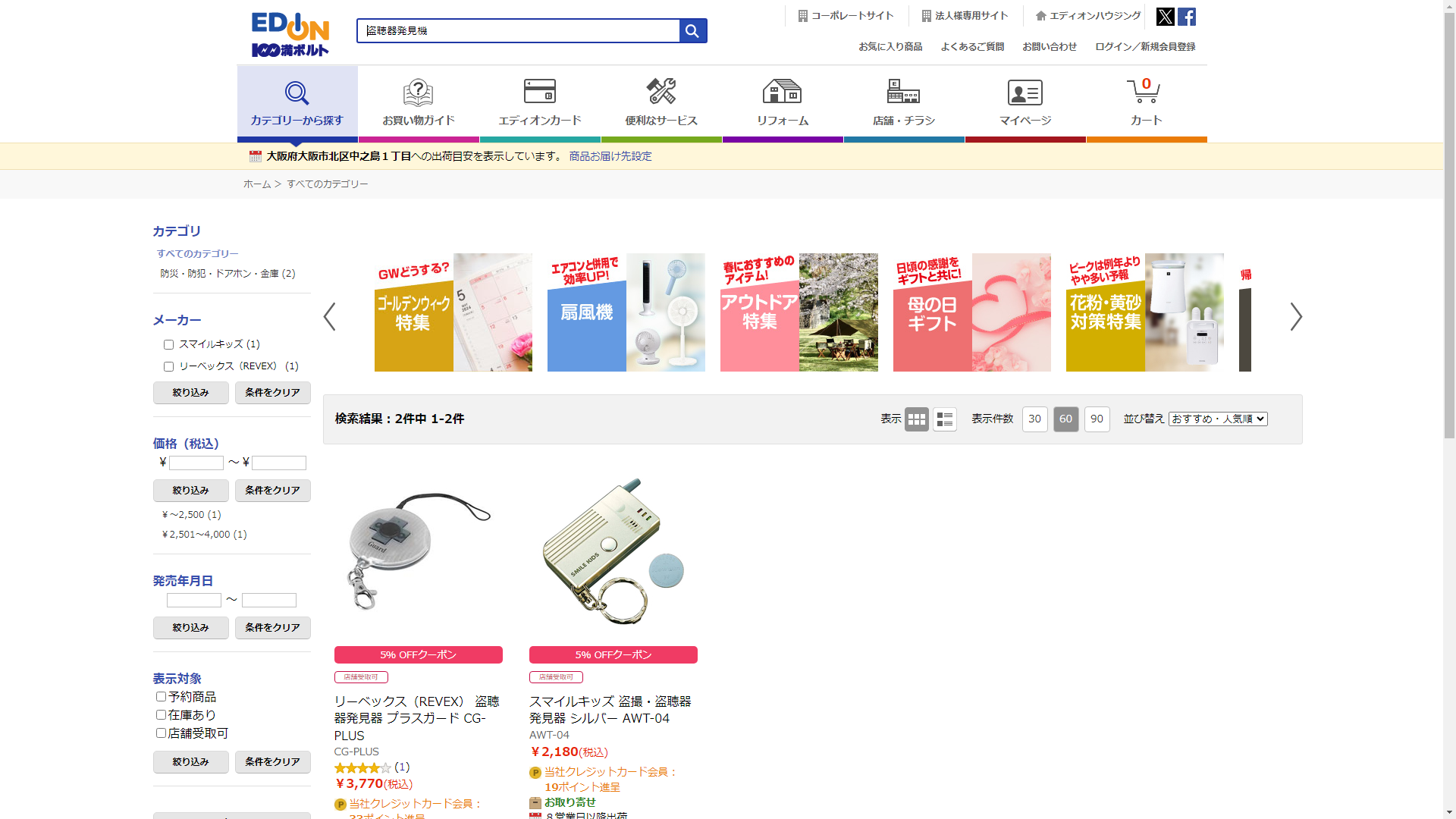 盗聴器発見機はEDIONで販売されています