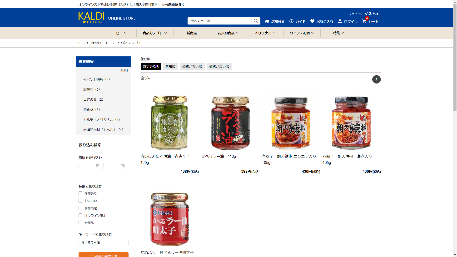 お調べしたところ現在、カルディでは食べるラー油に関連する商品を買うことが可能です。
