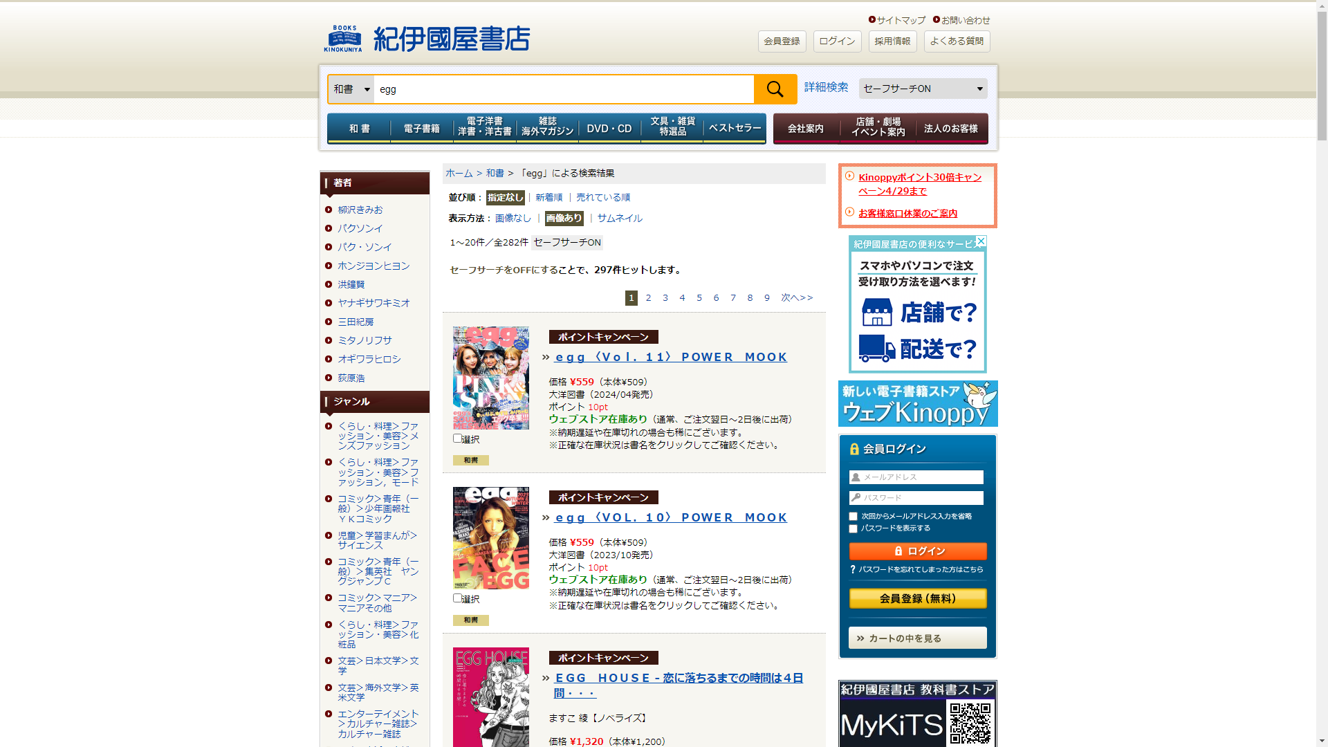 お調べしたところ現在、紀伊國屋書店ではeggに関連する商品を買うことが可能です。