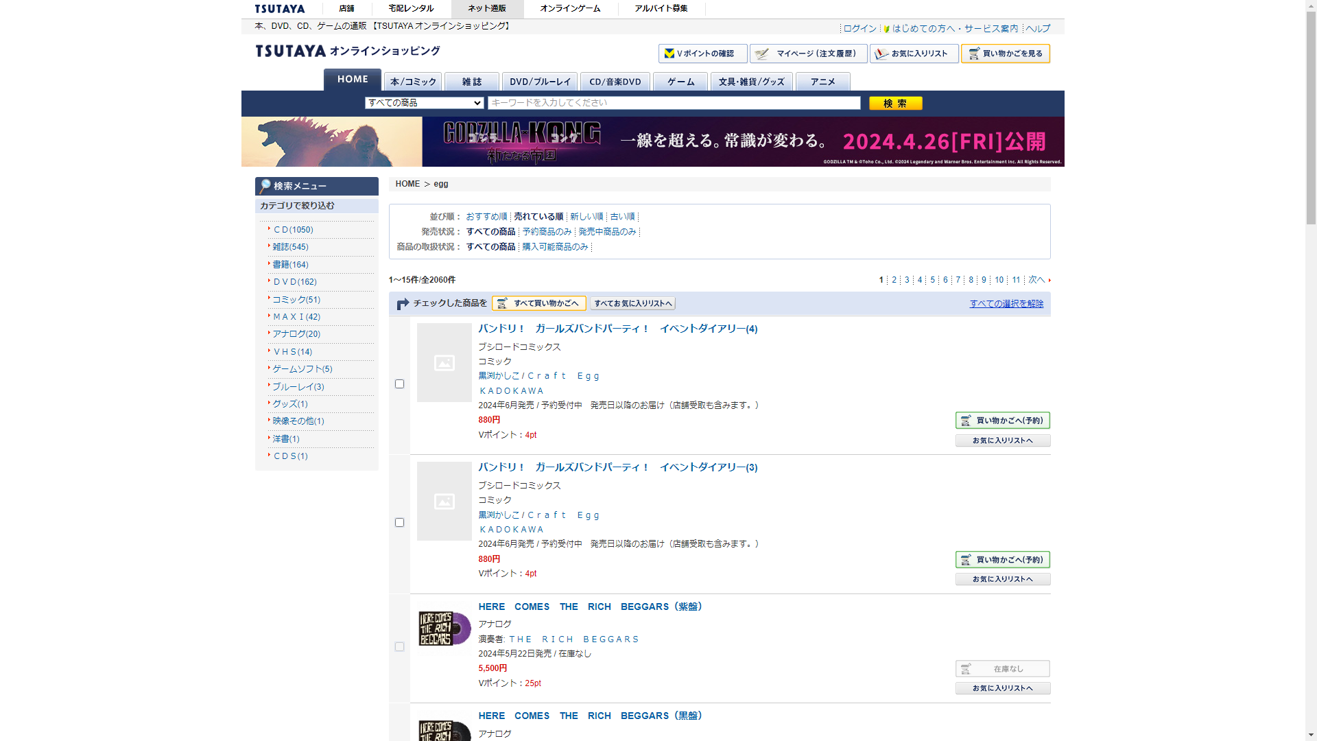 お調べしたところ現在、蔦屋書店ではeggに関連する商品が販売されています。