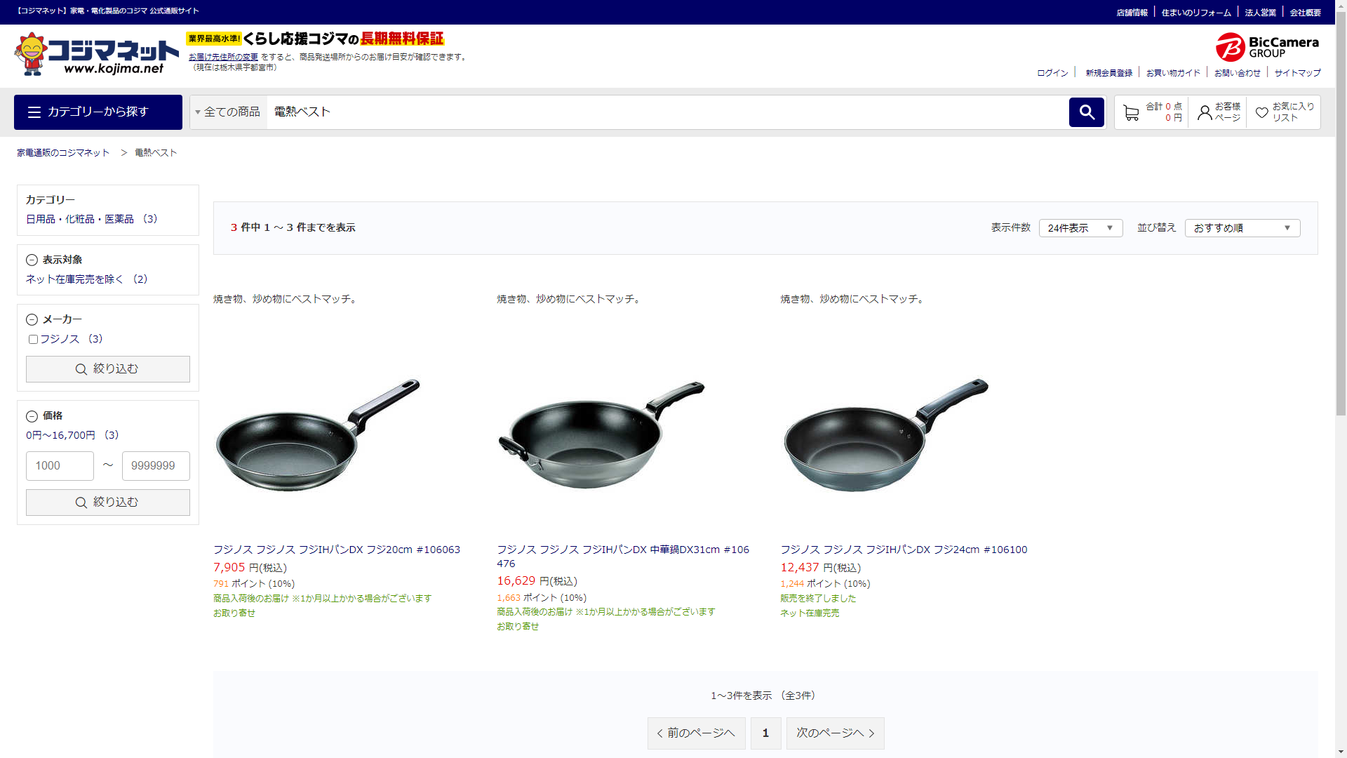 お調べしたところ現在、家電・電化製品のコジマでは電熱ベストの関連する商品が販売されています。