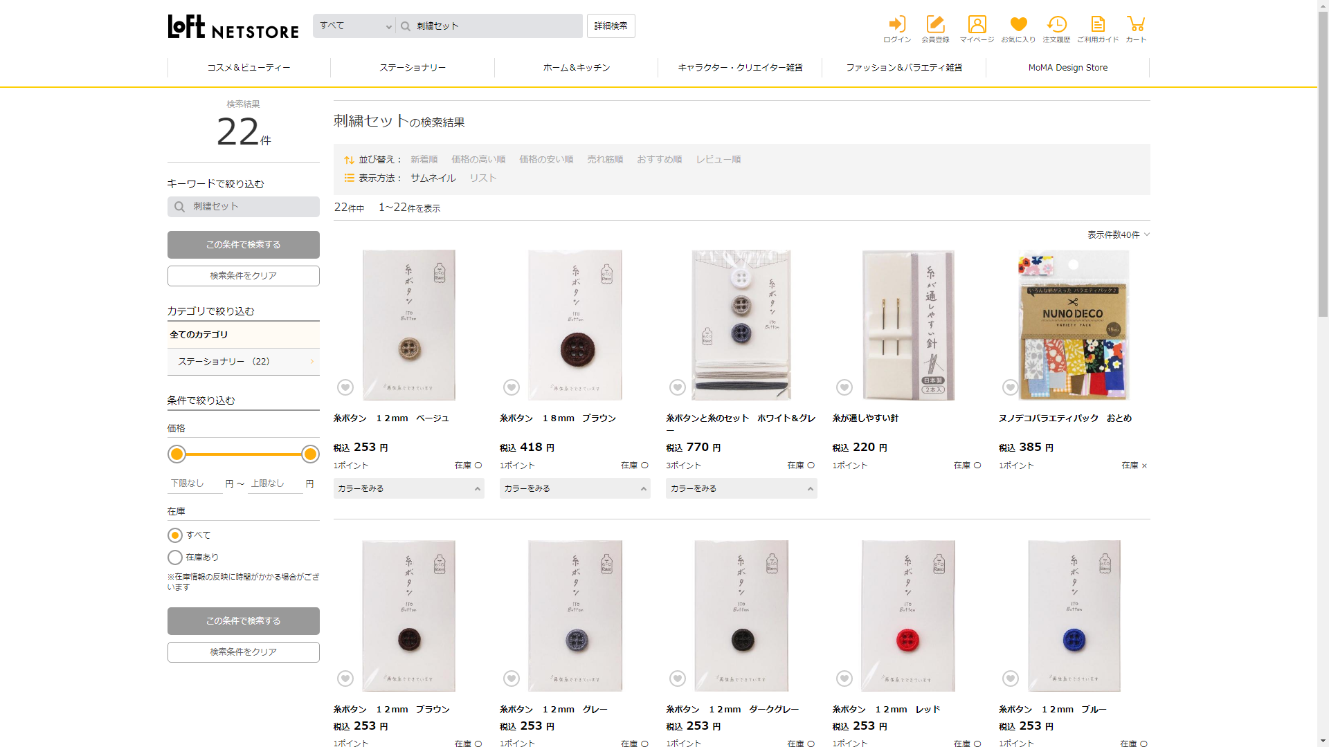 お調べしたところ現在、ロフトでは刺繍セットに関連する商品が販売されています。