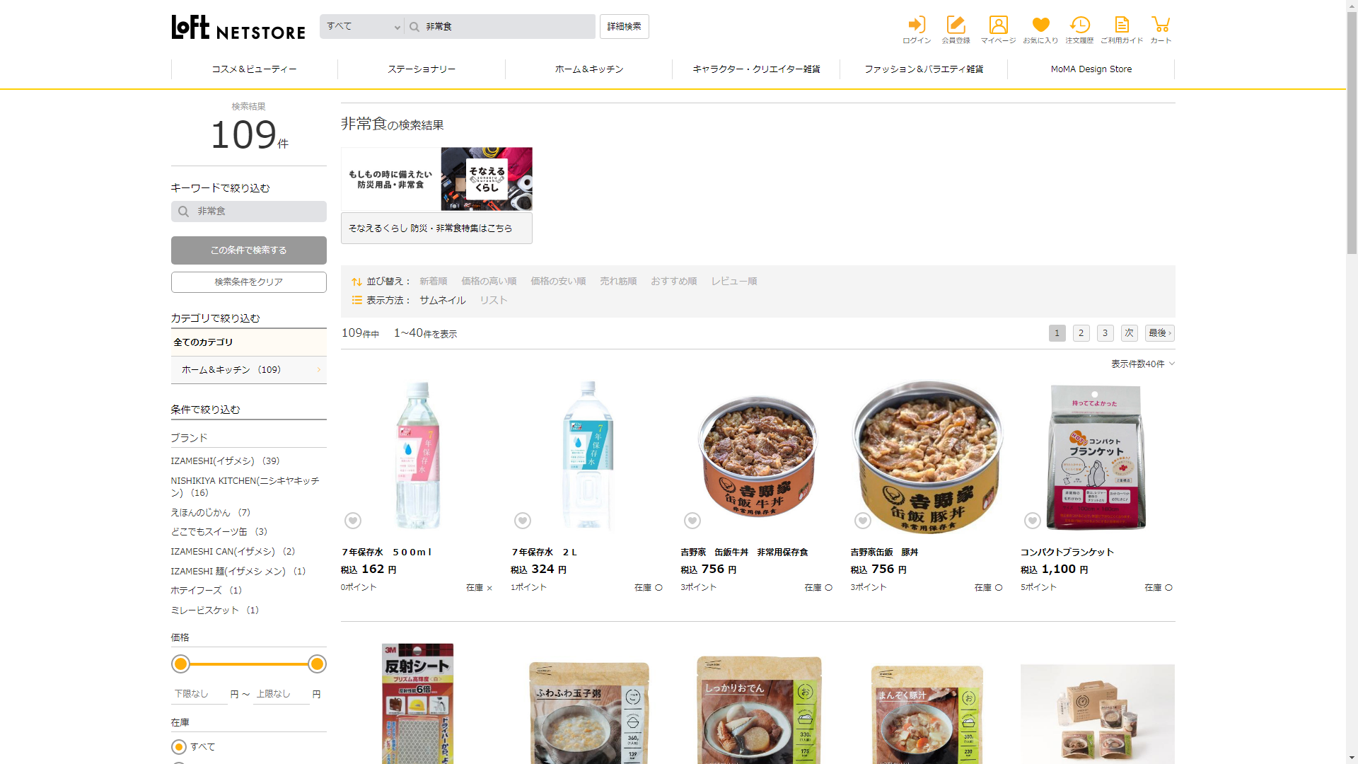 お調べしたところ現在、ロフトでは非常食に関連する商品が販売されています。