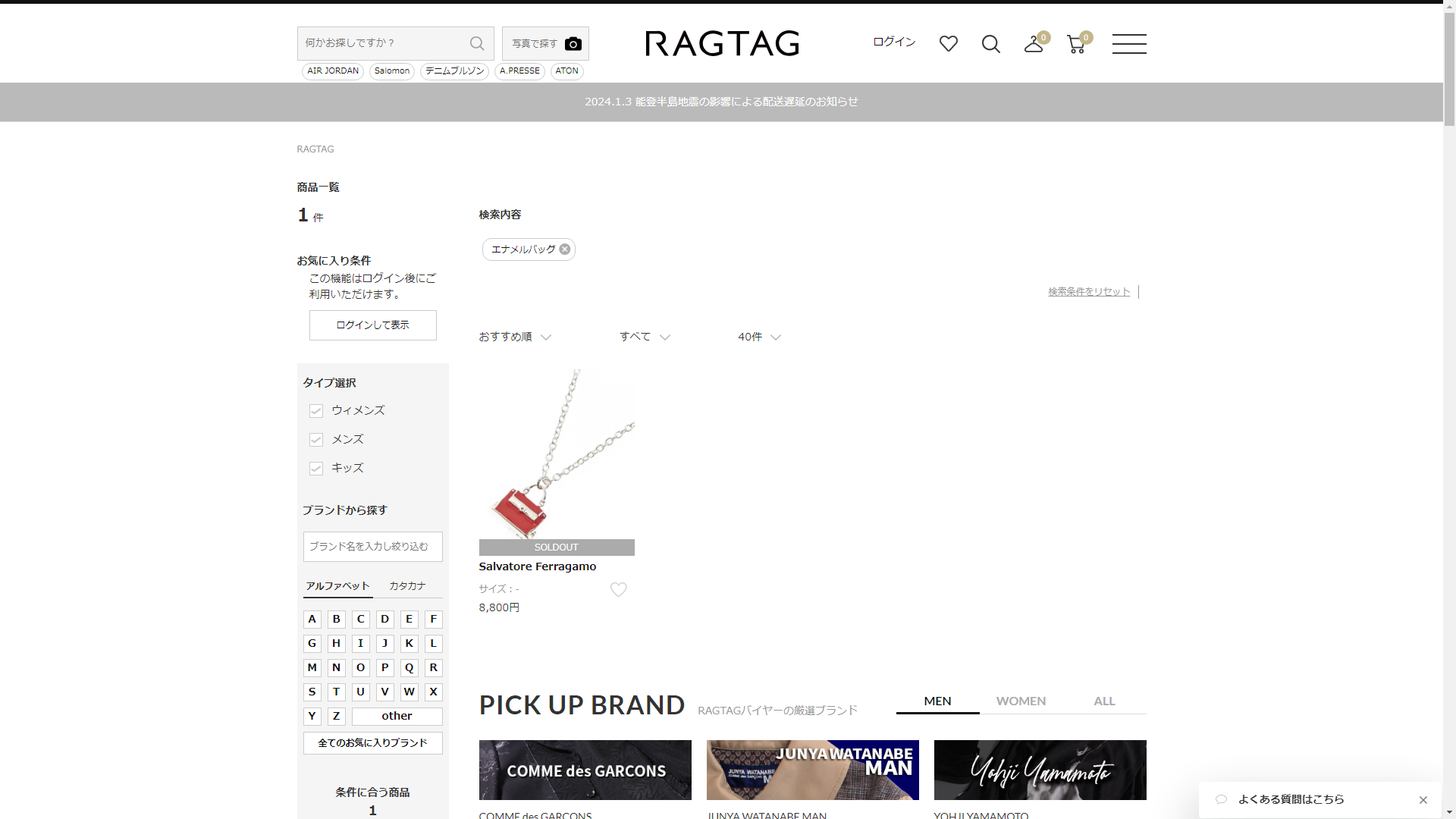 お調べしたところ現在、RAGTAGではエナメルバッグに関連する商品を買うことが可能です。
